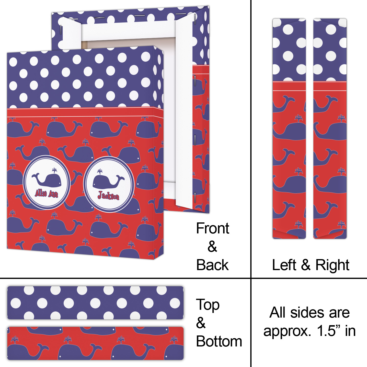 Calling all children who would rather be at the beach than at school! This nautical design, featuring polka dots and whales in All-American classic red, white, and blue, is perfect for you.