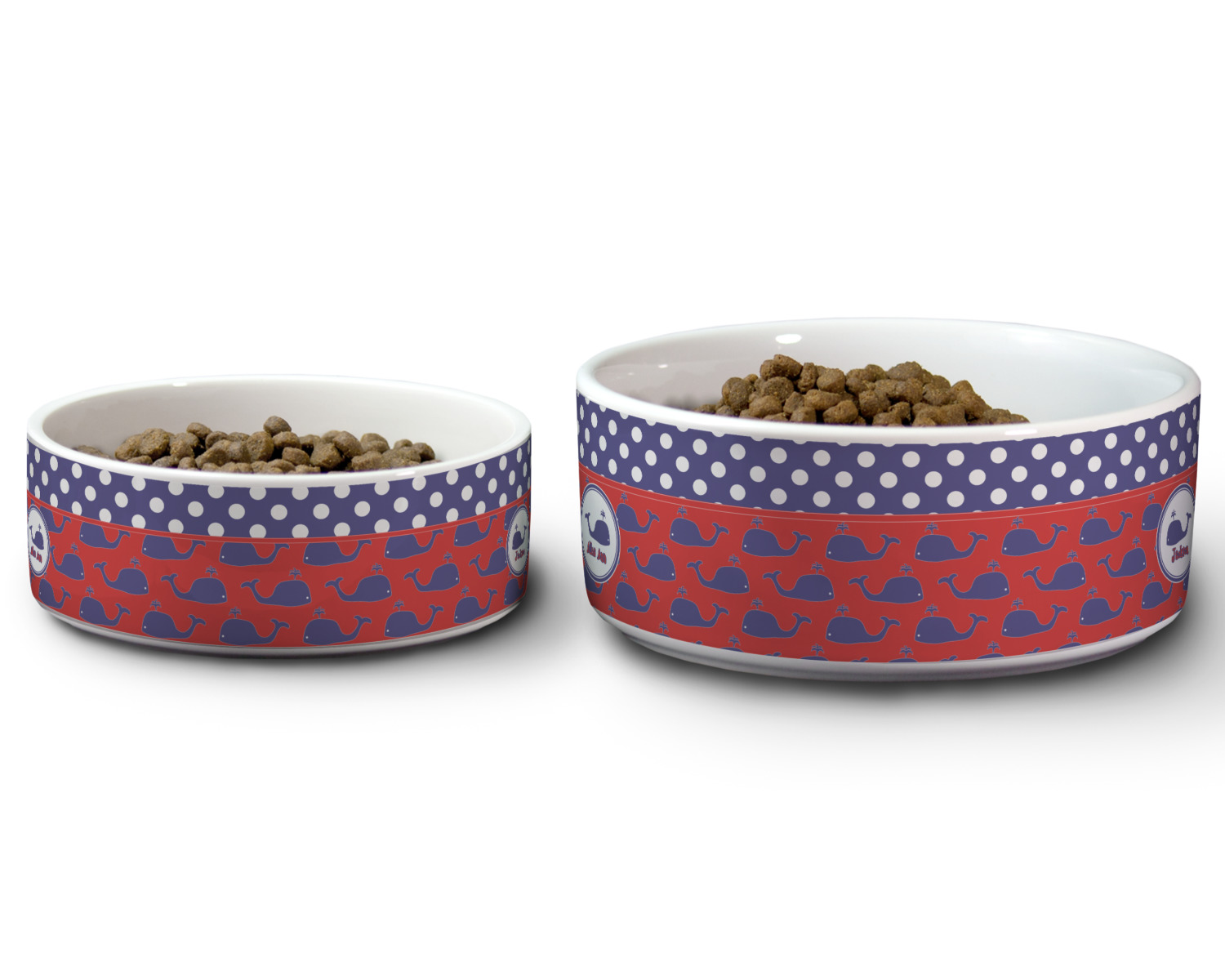 Our customized, ceramic dog bowls allow you to fashion a durable, yet expressive gift for your pet. These bowls are fashionably versatile; they suit both cats and dogs and can hold either food or water. Add your pet's name or favorite color to the design, and spruce up his/her eating area with one or two personalized pet bowls!
