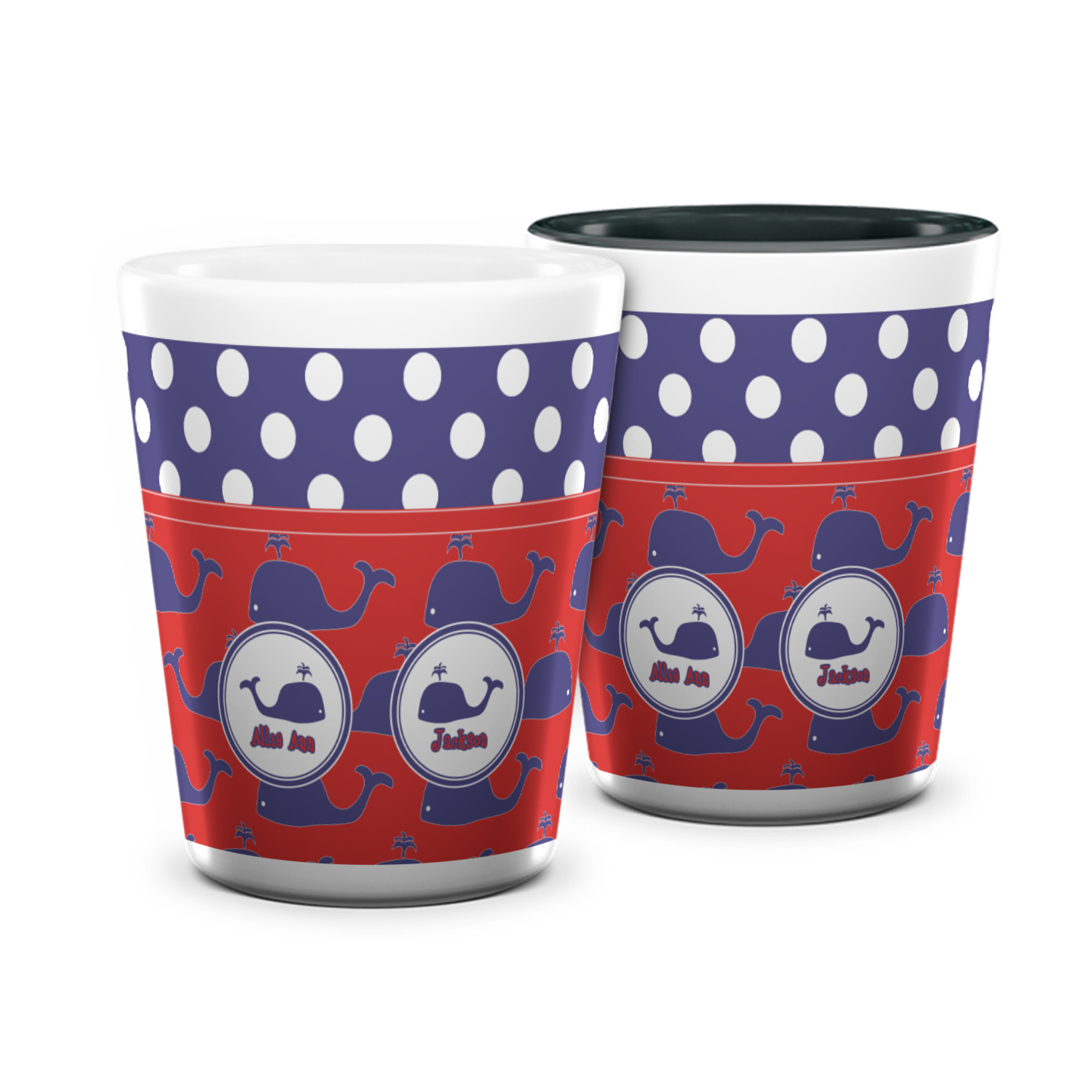 Made from ceramic these shot glasses are printed in full color with the design of your choice. These are a standard 1.5oz size and stand 2.25" tall. Available in a full white ceramic or a two-tone with a black color inside the shot glass. Buy a single or a set of 4, all of which can be designed separately to get you just what you want and need.