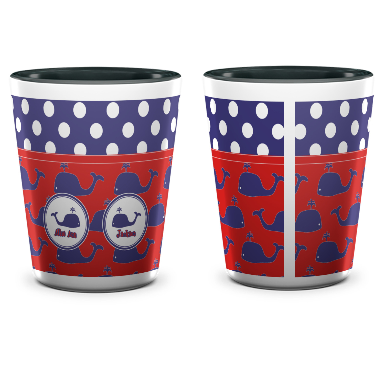 Made from ceramic these shot glasses are printed in full color with the design of your choice. These are a standard 1.5oz size and stand 2.25" tall. Available in a full white ceramic or a two-tone with a black color inside the shot glass. Buy a single or a set of 4, all of which can be designed separately to get you just what you want and need.
