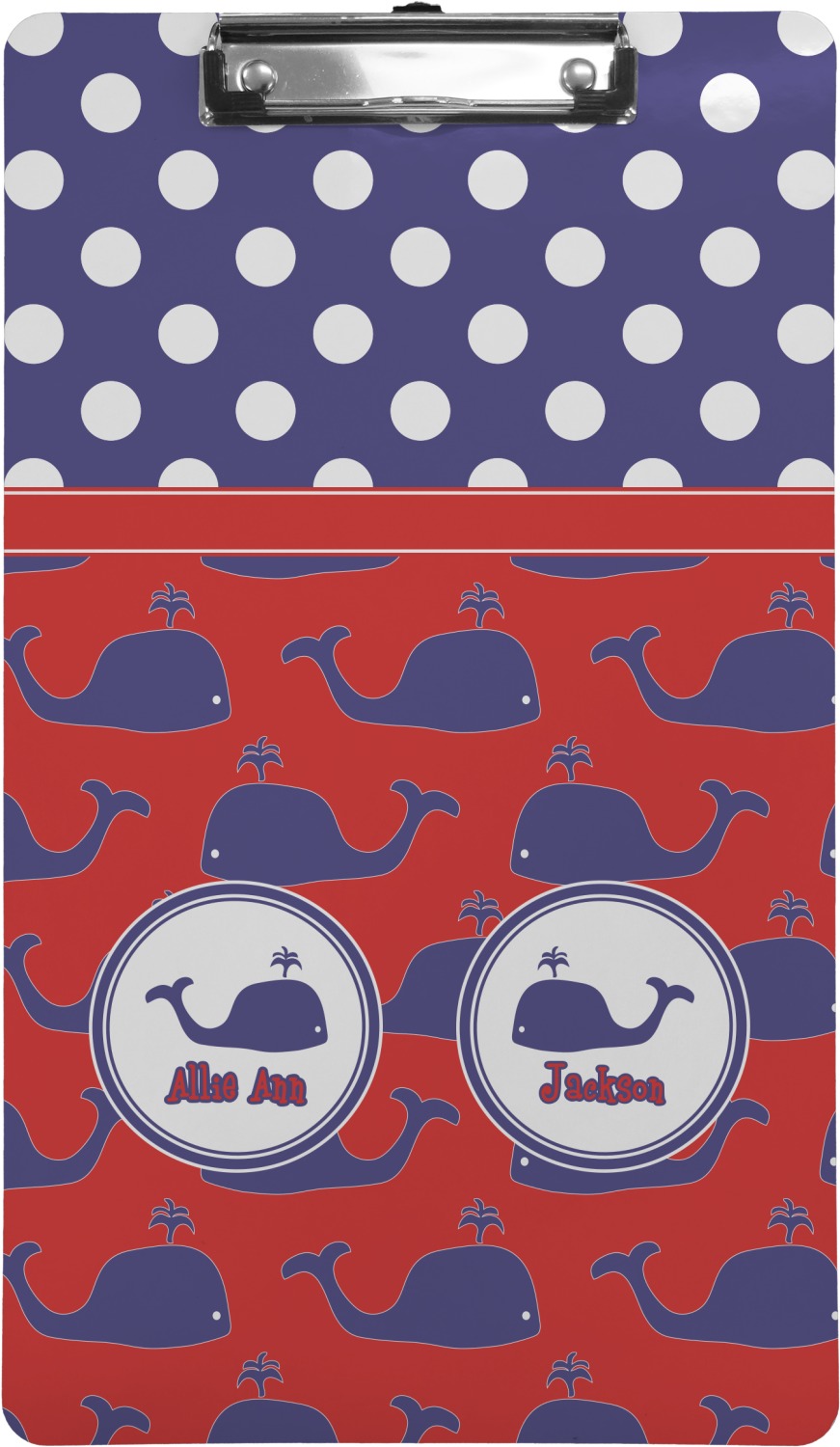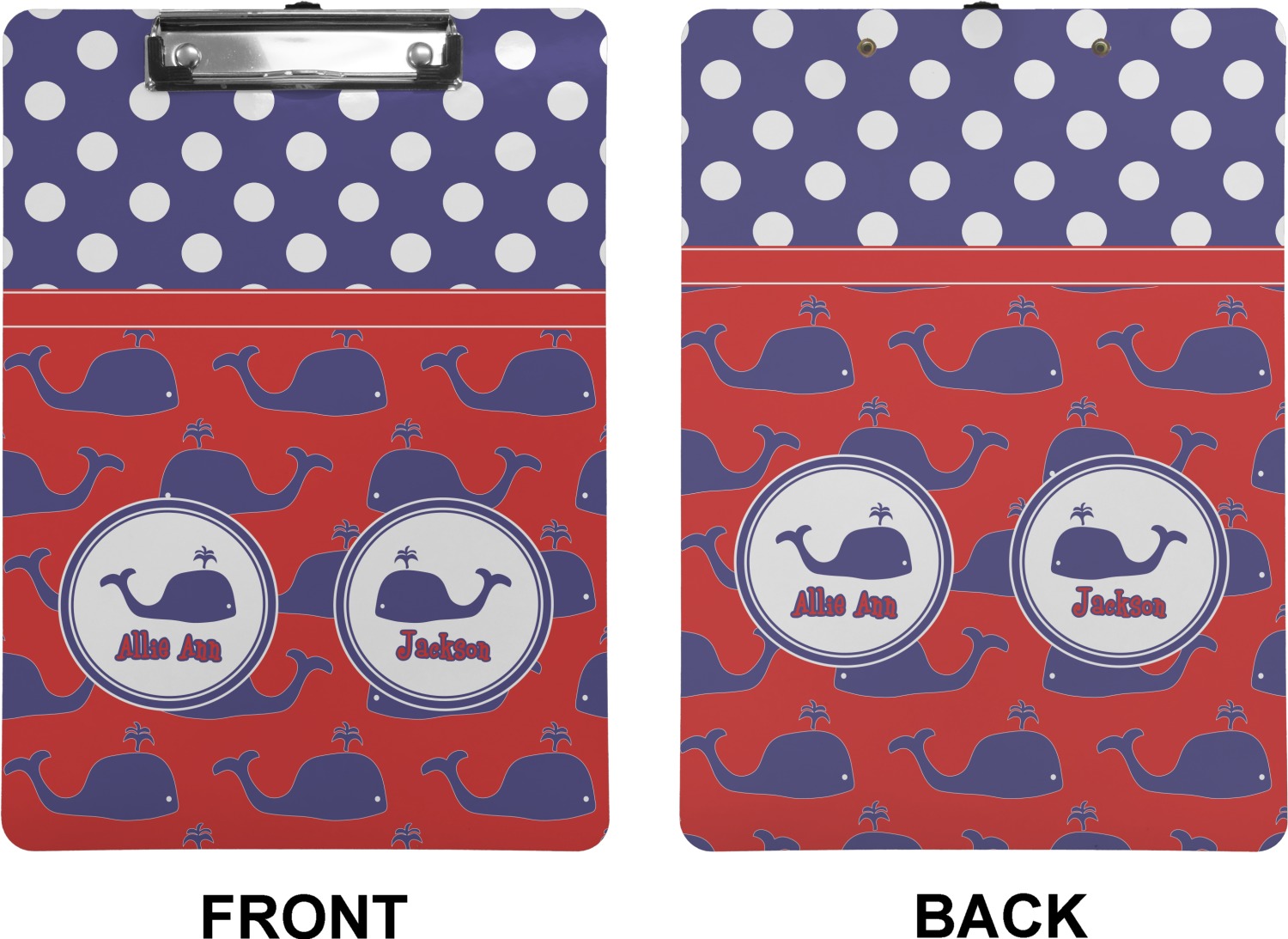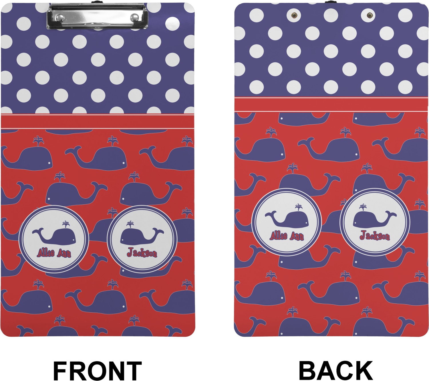 These custom clipboards are made from a strong hardboard and are coated with a glossy finish that accentuates the colors of your design. Alongside a retractable hook at its top, these decorative clipboards also feature sturdy clips to secure several sheets of paper. We sell these clipboards in two separate sizes. Our letter size measures at 12.5" L x 9" W, while our legal clipboard is approximately 15.5" L x 9" W. On both models, your personalization is printed on both sides of this clipboard and can be customized individually.
