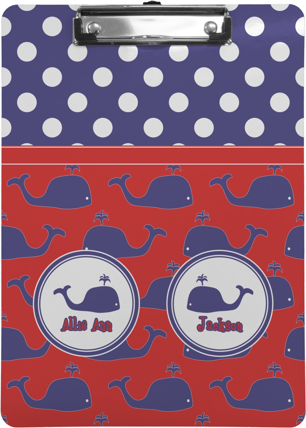 Calling all children who would rather be at the beach than at school! This nautical design, featuring polka dots and whales in All-American classic red, white, and blue, is perfect for you.