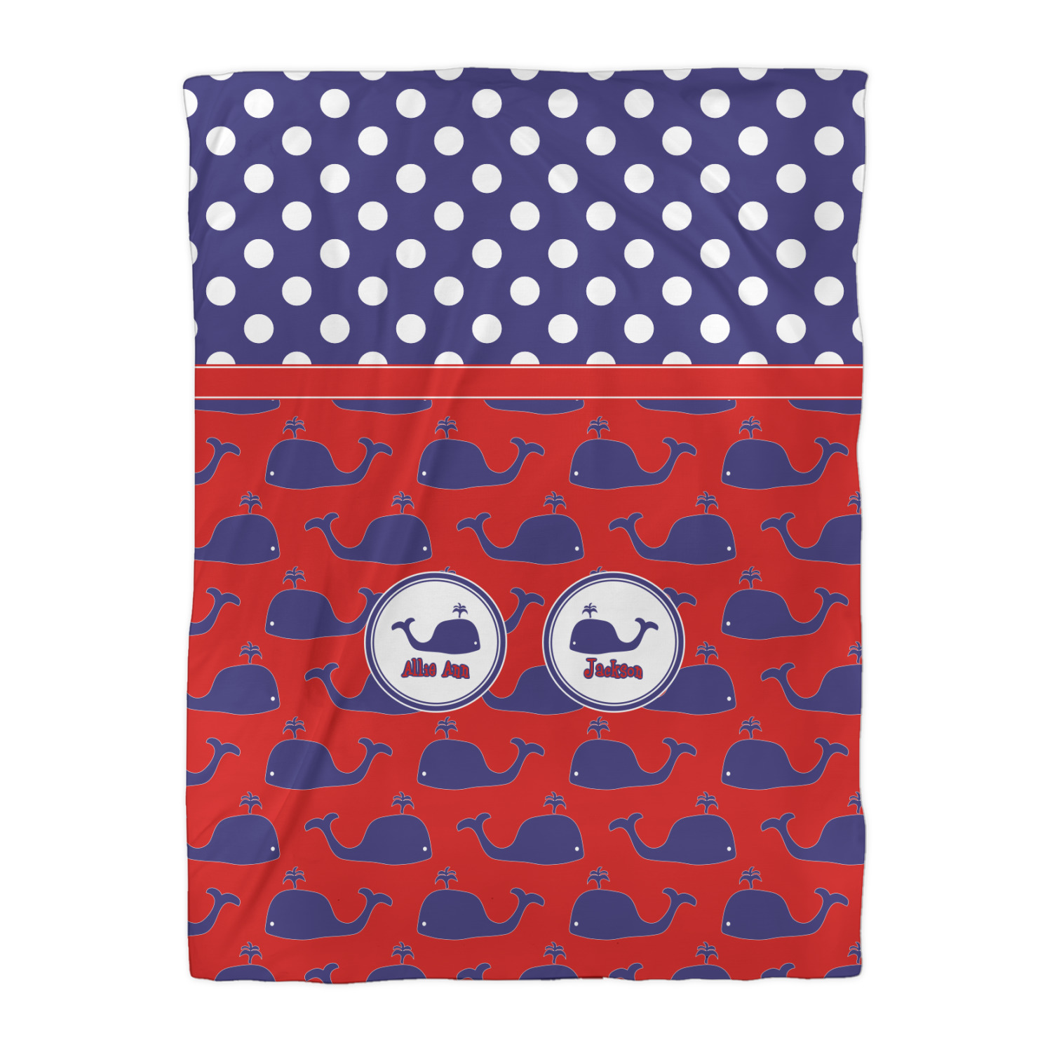 Calling all children who would rather be at the beach than at school! This nautical design, featuring polka dots and whales in All-American classic red, white, and blue, is perfect for you.