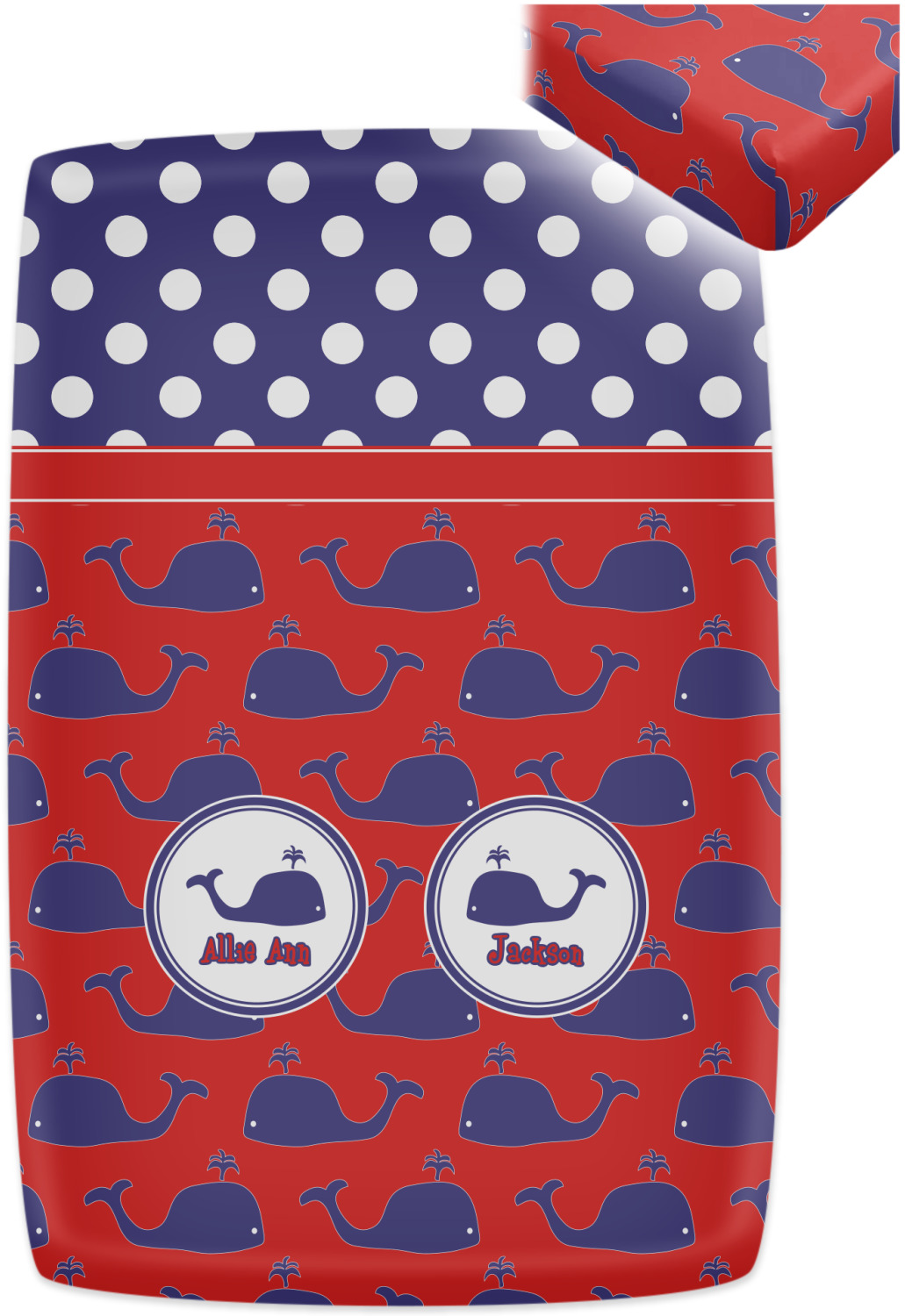 Calling all children who would rather be at the beach than at school! This nautical design, featuring polka dots and whales in All-American classic red, white, and blue, is perfect for you.