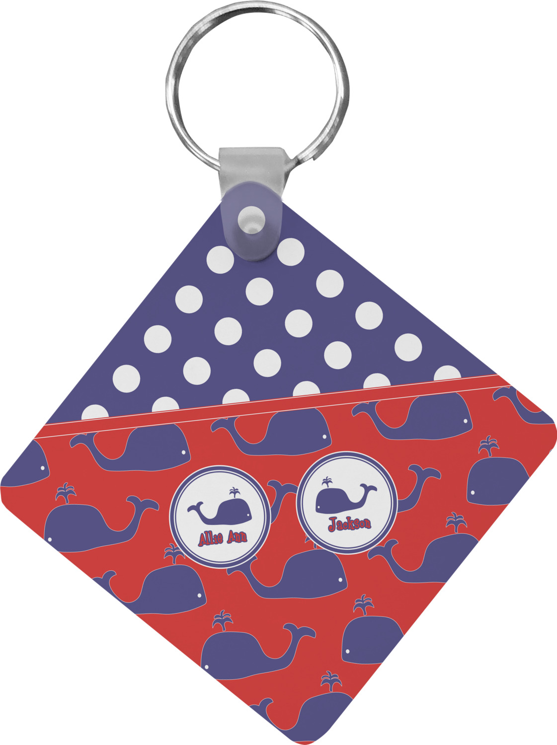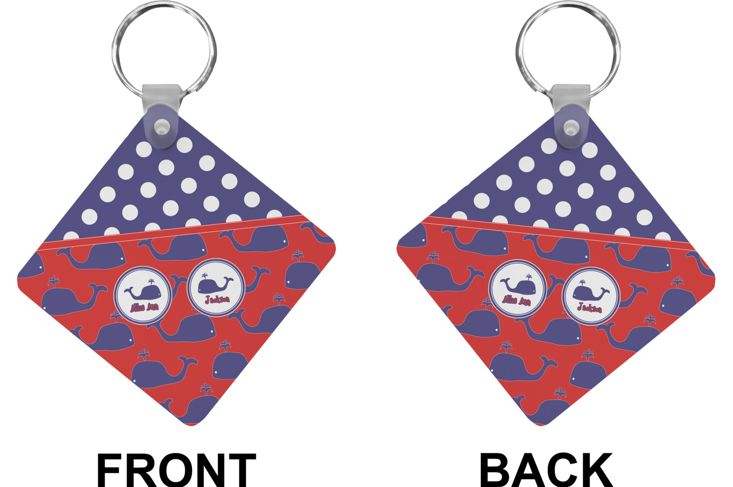 Our personalized keychains attach to the included metal, split key ring with a plastic, removable snap. Since a metal ring is included with your purchase, you have the liberty to keep your keys together on the ring, with or without your unique keychain. We offer this keychain in three different shapes: circle, heart, or diamond. We print your personalized design(s) on both sides of the key chain, and the surface has a glossy, reflective finish that only emphasizes your design. Each keychain is approximately 2.25 by 2.25 inches.