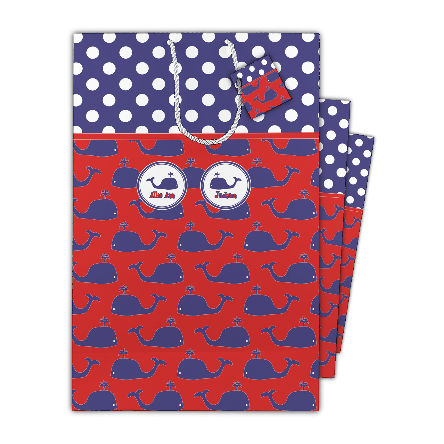 Calling all children who would rather be at the beach than at school! This nautical design, featuring polka dots and whales in All-American classic red, white, and blue, is perfect for you.
