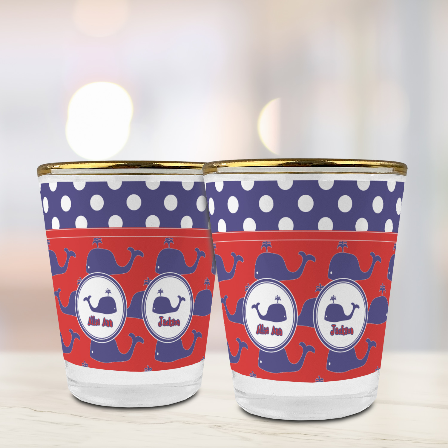 Made with frosted glass, these shot glasses are printed in full color with the design of your choice. They are a standard 1.5oz shot glass and are 2.4" tall. The print is wrapped around the shot glass in a full wrap and boldly displays your customization.
