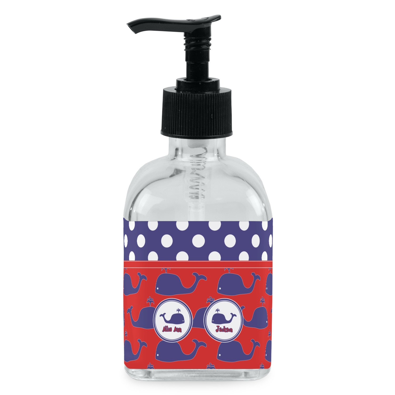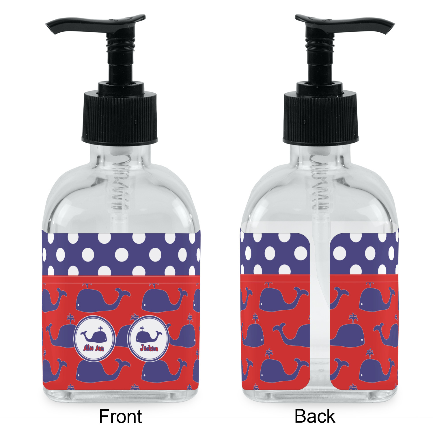 Crafted from a high-quality glass, these soap dispensers and lotion dispensers are durable and robust, while still looking elegant. They are sold with black pumps. Each soap dispenser pump measures at 6.5 by 2.25 inches. On these soap pumps, we display your customized design on a personalized vinyl adhesive on three sides. That way, you can judge how much liquid is in the bottles from the back.