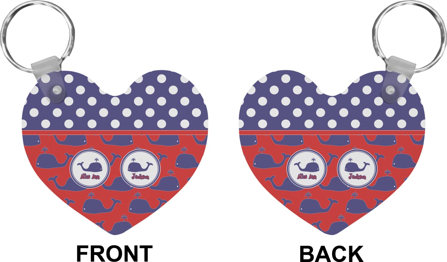 Our personalized keychains attach to the included metal, split key ring with a plastic, removable snap. Since a metal ring is included with your purchase, you have the liberty to keep your keys together on the ring, with or without your unique keychain. We offer this keychain in three different shapes: circle, heart, or diamond. We print your personalized design(s) on both sides of the key chain, and the surface has a glossy, reflective finish that only emphasizes your design. Each keychain is approximately 2.25 by 2.25 inches.