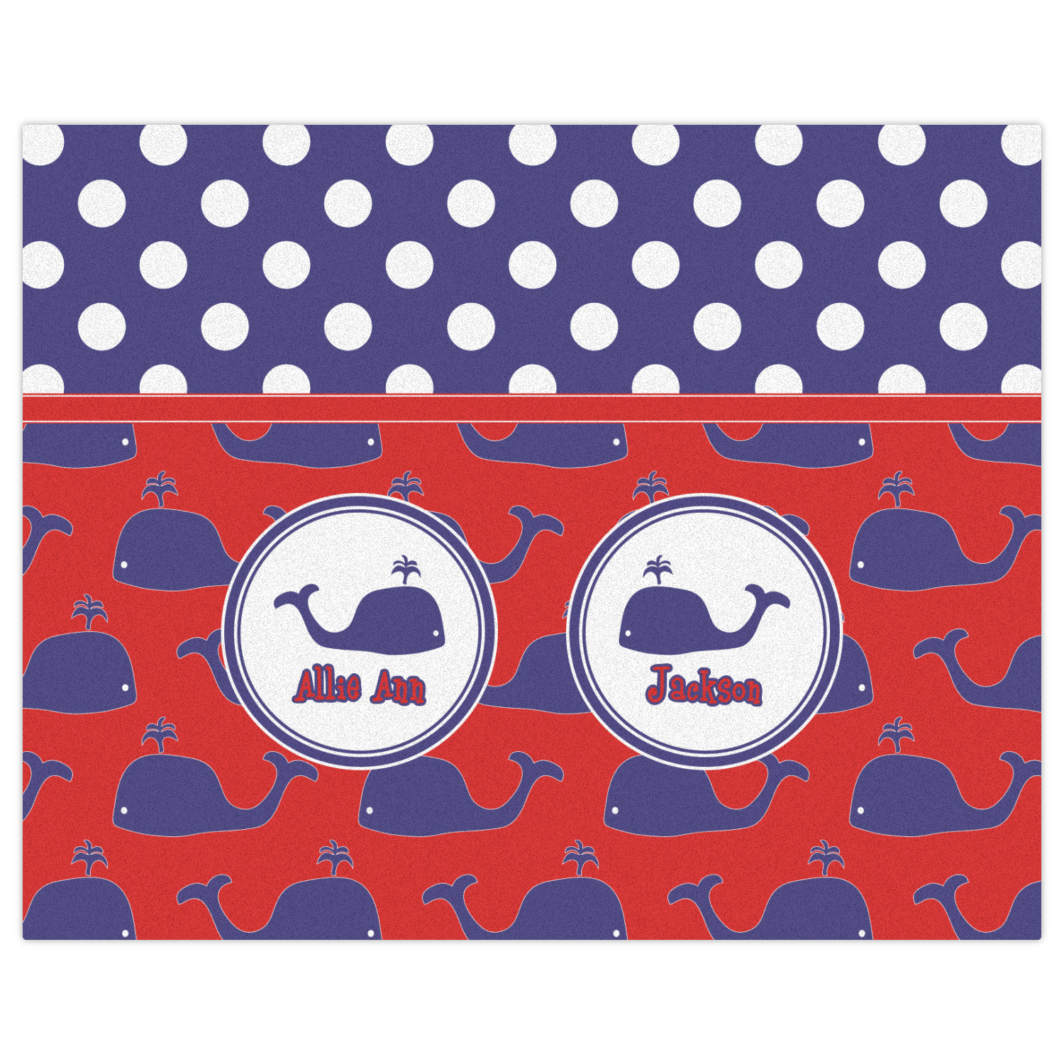 Calling all children who would rather be at the beach than at school! This nautical design, featuring polka dots and whales in All-American classic red, white, and blue, is perfect for you.