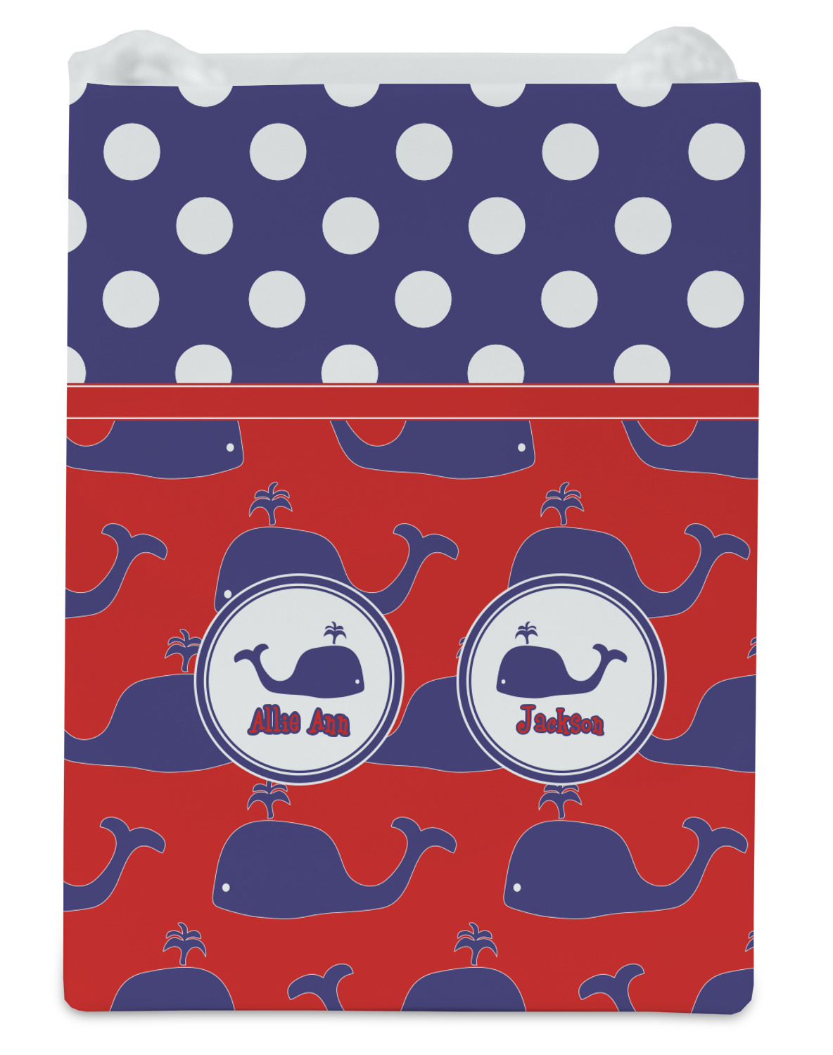 Calling all children who would rather be at the beach than at school! This nautical design, featuring polka dots and whales in All-American classic red, white, and blue, is perfect for you.