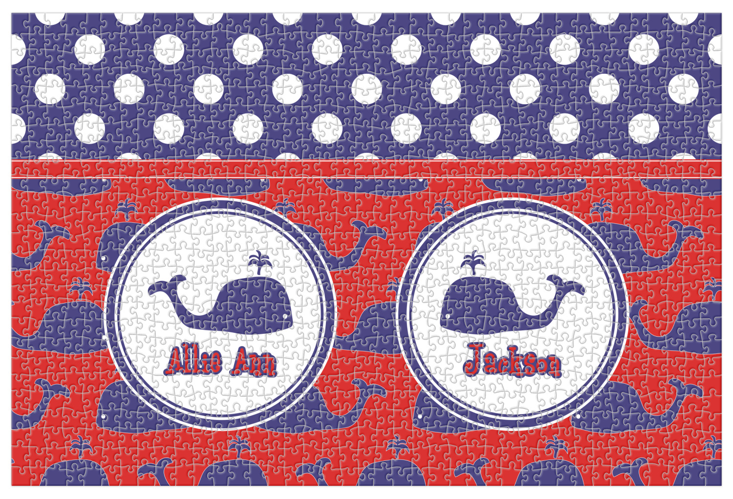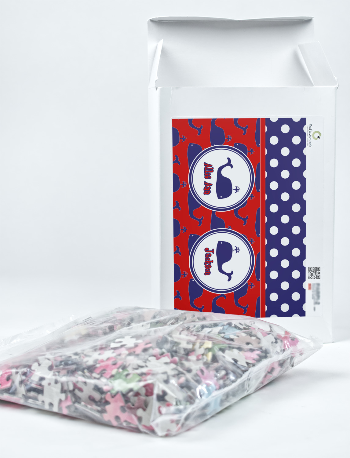 You can also upload your logo or art that you or your kids drew. To create more challenging jigsaw puzzles, you can create a pattern from with your logo or artwork. You can also add other elements such as text or personalization.