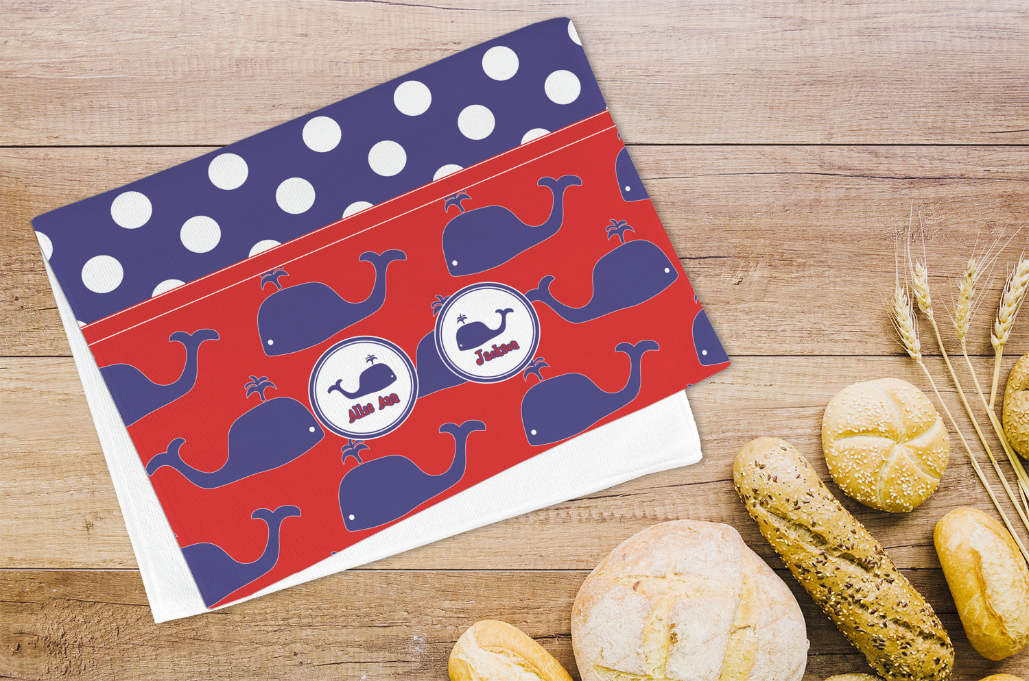 Calling all children who would rather be at the beach than at school! This nautical design, featuring polka dots and whales in All-American classic red, white, and blue, is perfect for you.