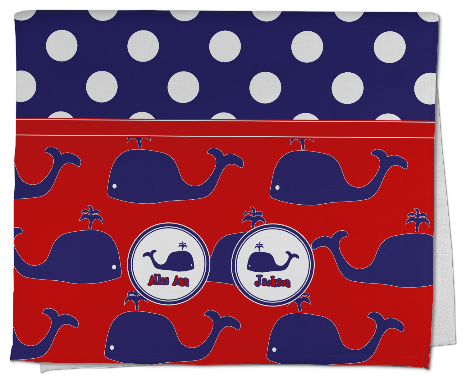 Calling all children who would rather be at the beach than at school! This nautical design, featuring polka dots and whales in All-American classic red, white, and blue, is perfect for you.