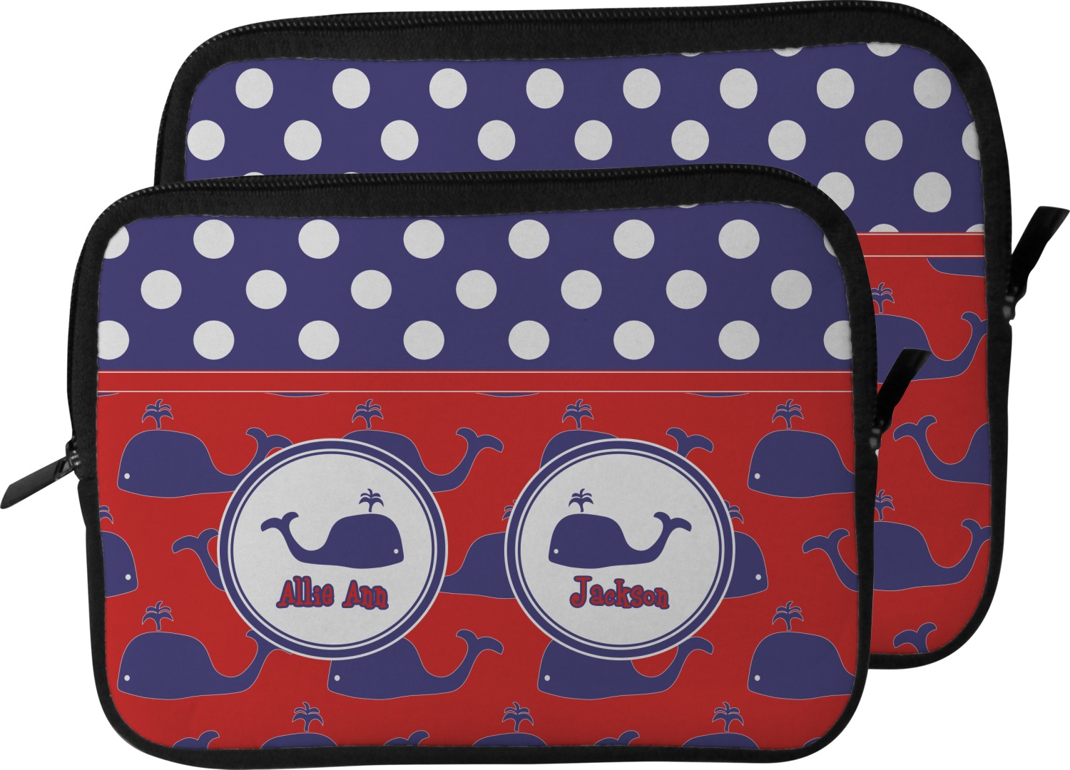 These laptop covers are built from a water-resistant, cushioned neoprene. We display your personalized design on the front of this computer sleeve, while the other sides are simply the black color of the neoprene fabric. A zipper lines the top half of this case, for direct access to your device. For added protection, the interior of this neoprene laptop sleeve is lined with a padded, minky-like material.