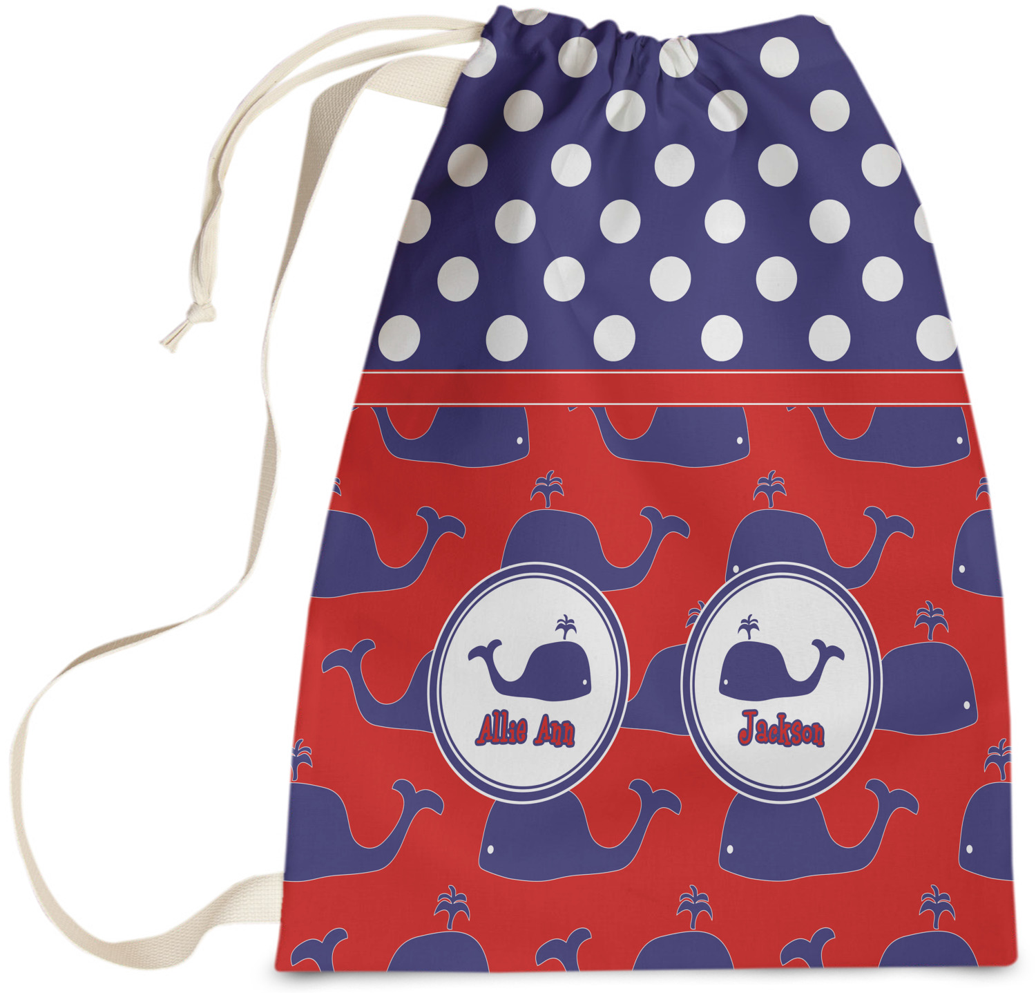 Calling all children who would rather be at the beach than at school! This nautical design, featuring polka dots and whales in All-American classic red, white, and blue, is perfect for you.