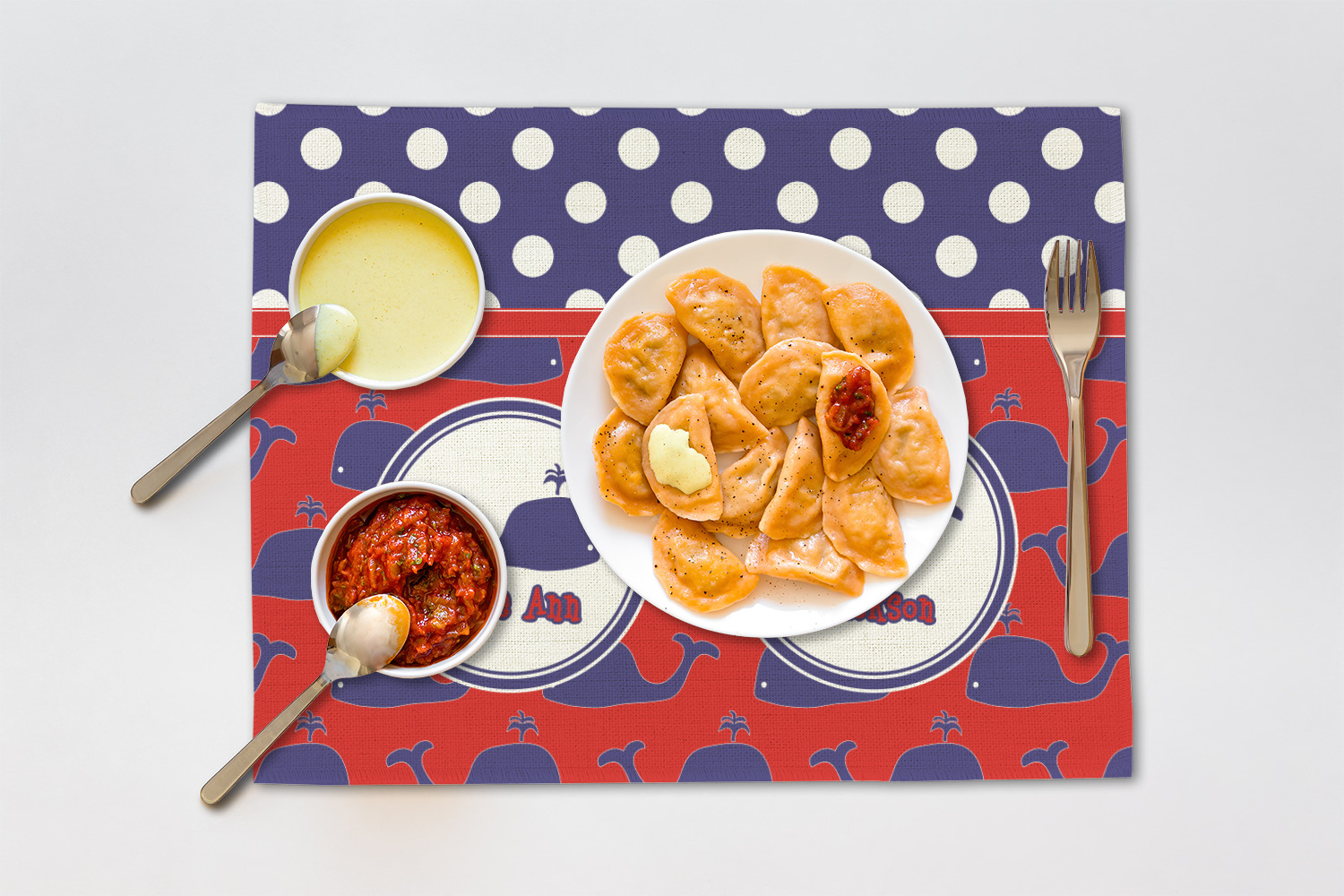 Calling all children who would rather be at the beach than at school! This nautical design, featuring polka dots and whales in All-American classic red, white, and blue, is perfect for you.