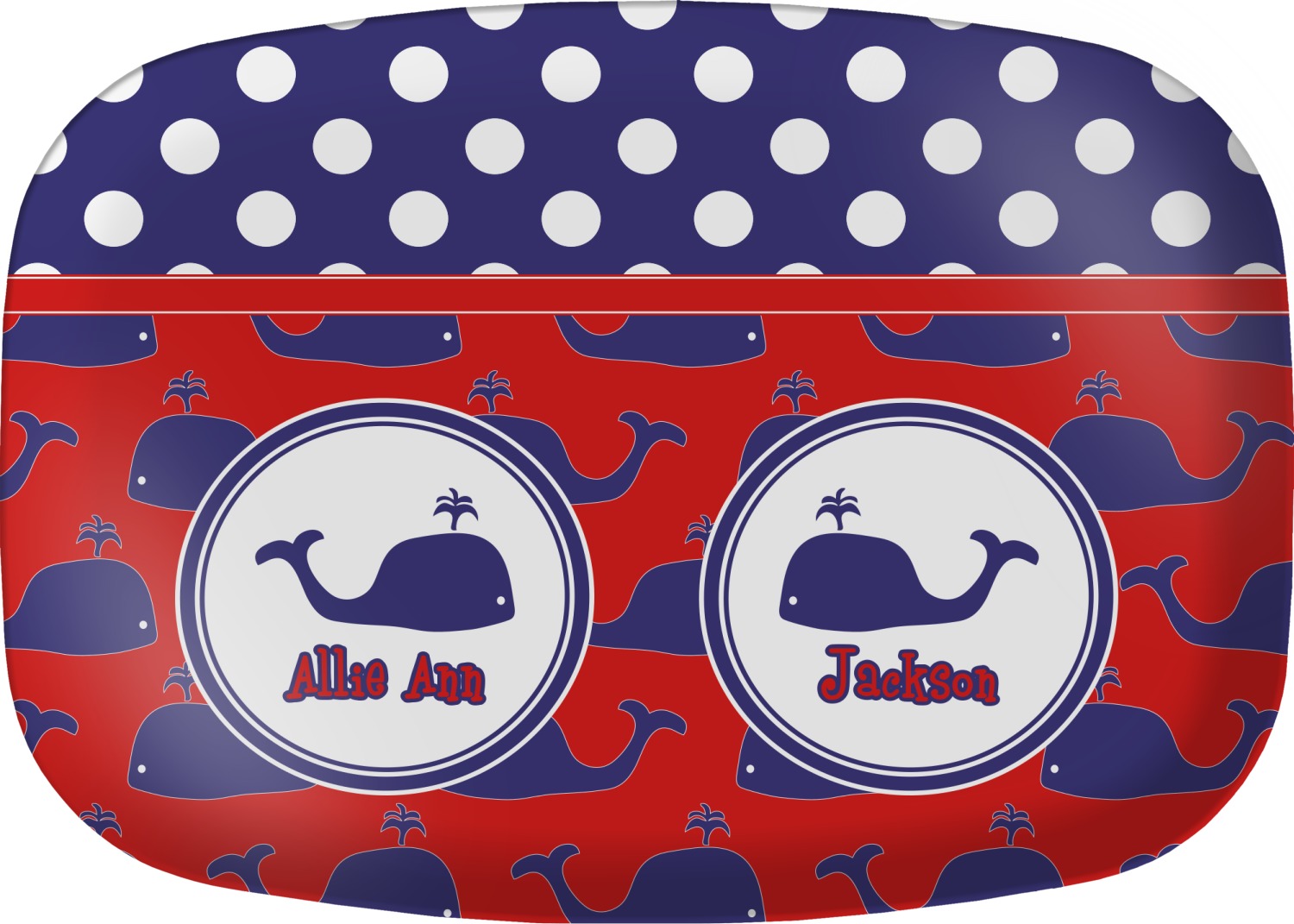 Calling all children who would rather be at the beach than at school! This nautical design, featuring polka dots and whales in All-American classic red, white, and blue, is perfect for you.