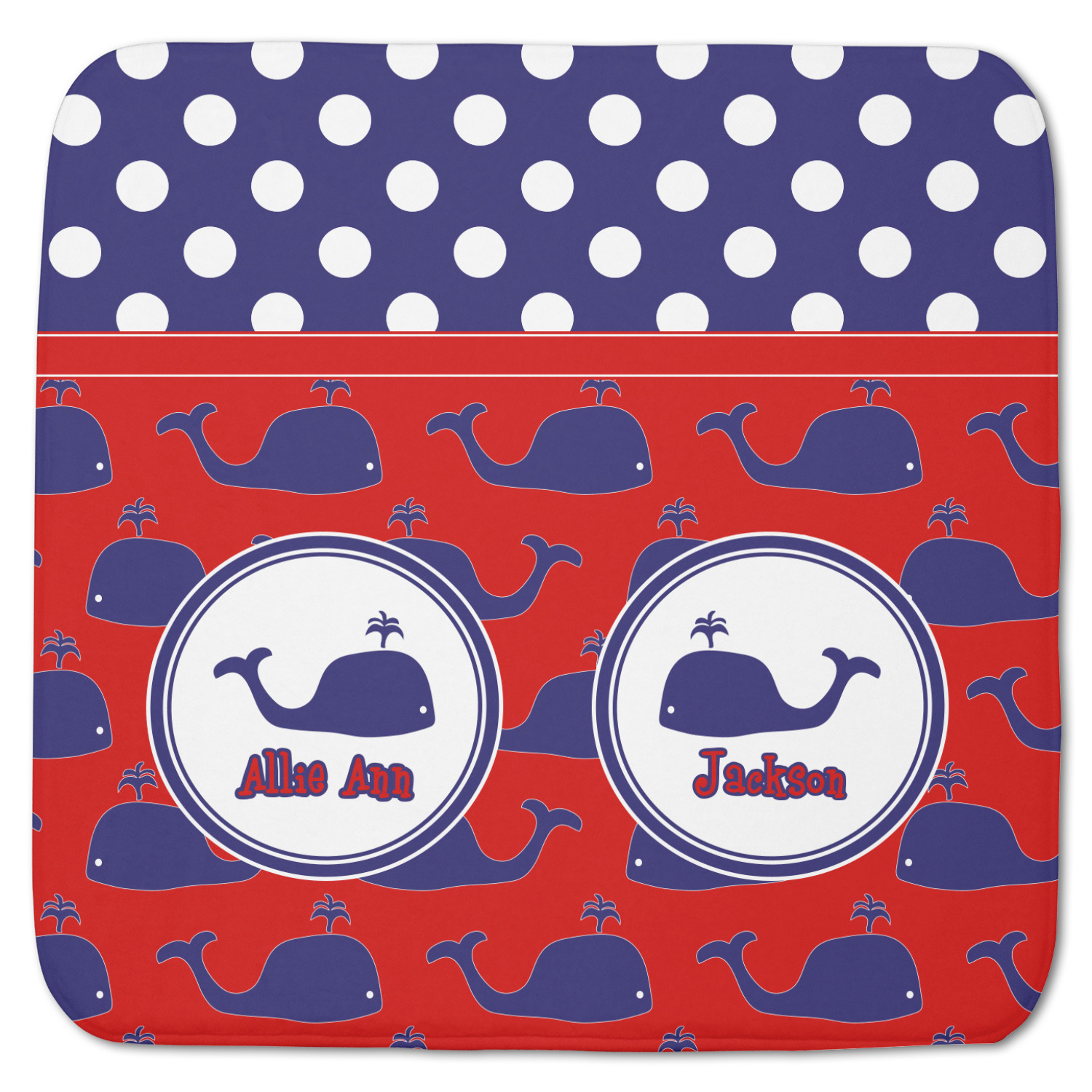 Calling all children who would rather be at the beach than at school! This nautical design, featuring polka dots and whales in All-American classic red, white, and blue, is perfect for you.