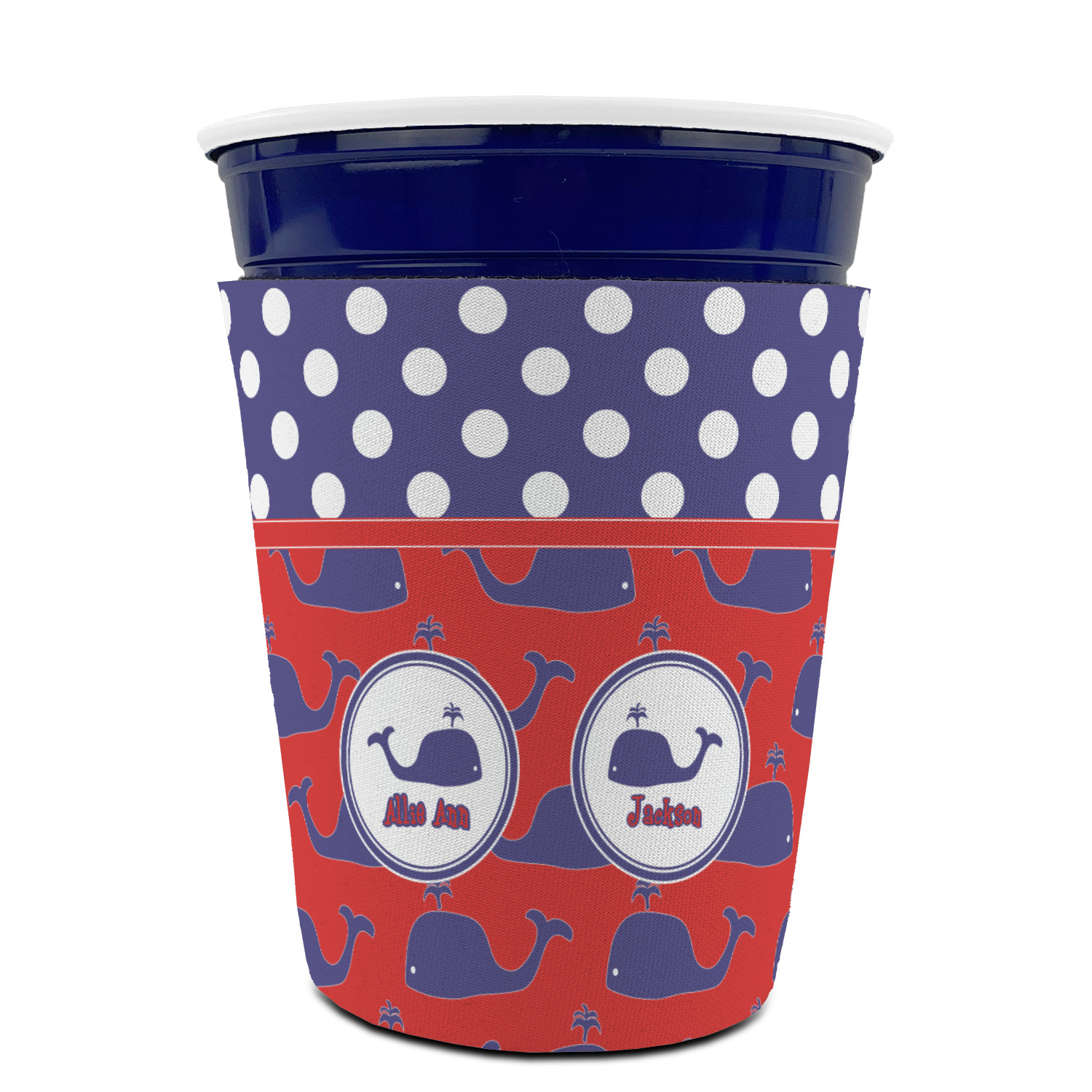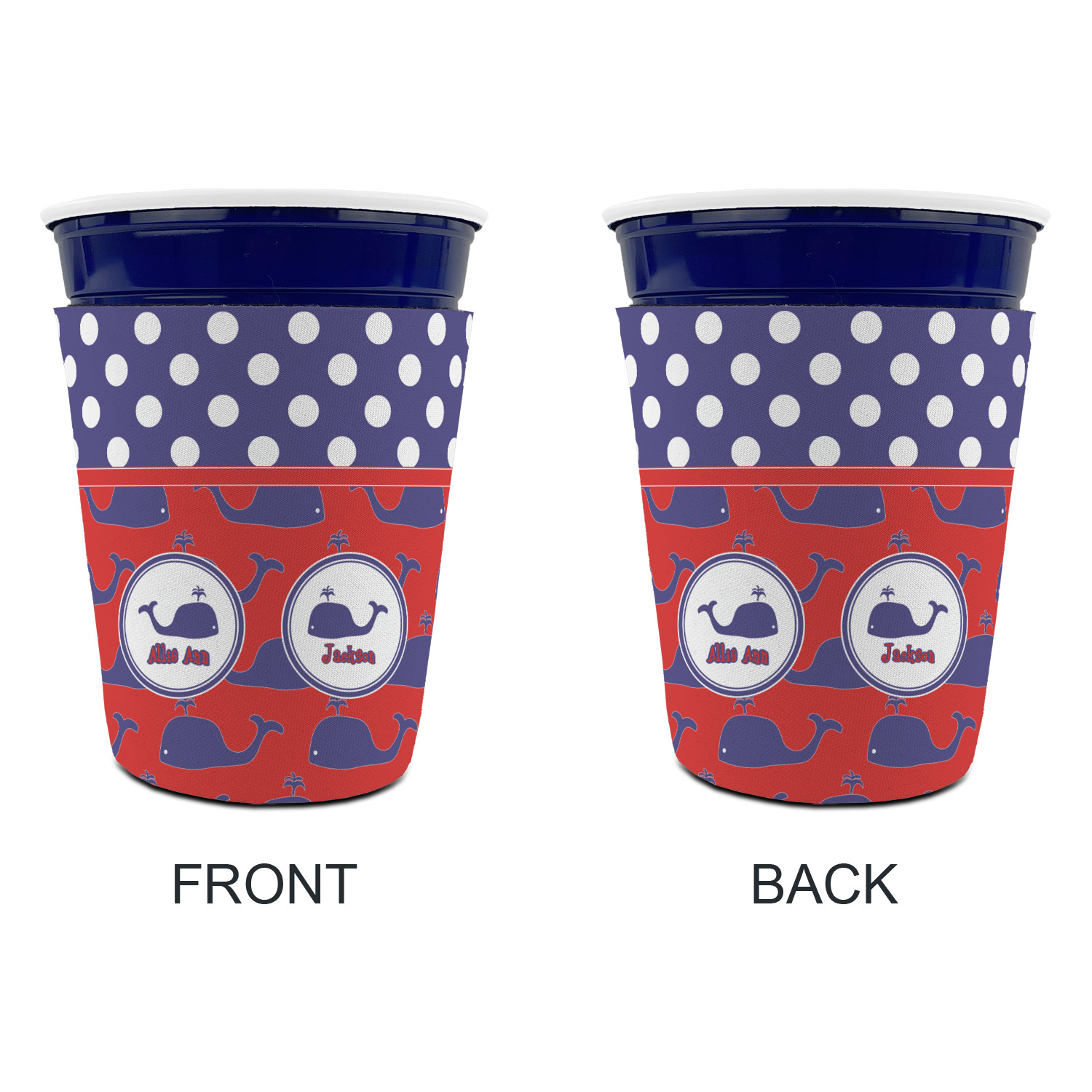 Made from neoprene with a polyester outer fabric and sewn seams, these premium quality party cup sleeves are very durable and will hold up to heavy use. They are available in 2 styles - with a bottom or just a sleeve to go around the outside of the tapered cup. The sleeve covers are about 4" tall and cover about 90% of the classic 16 oz. Solo cup.