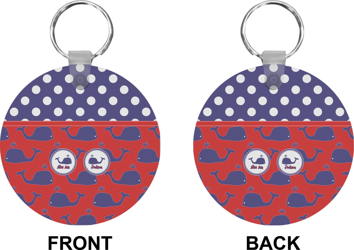 Our personalized keychains attach to the included metal, split key ring with a plastic, removable snap. Since a metal ring is included with your purchase, you have the liberty to keep your keys together on the ring, with or without your unique keychain. We offer this keychain in three different shapes: circle, heart, or diamond. We print your personalized design(s) on both sides of the key chain, and the surface has a glossy, reflective finish that only emphasizes your design. Each keychain is approximately 2.25 by 2.25 inches.