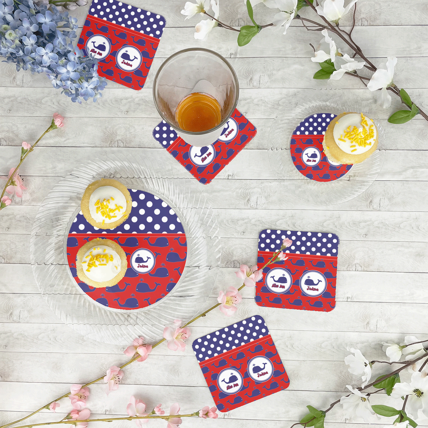 Calling all children who would rather be at the beach than at school! This nautical design, featuring polka dots and whales in All-American classic red, white, and blue, is perfect for you.