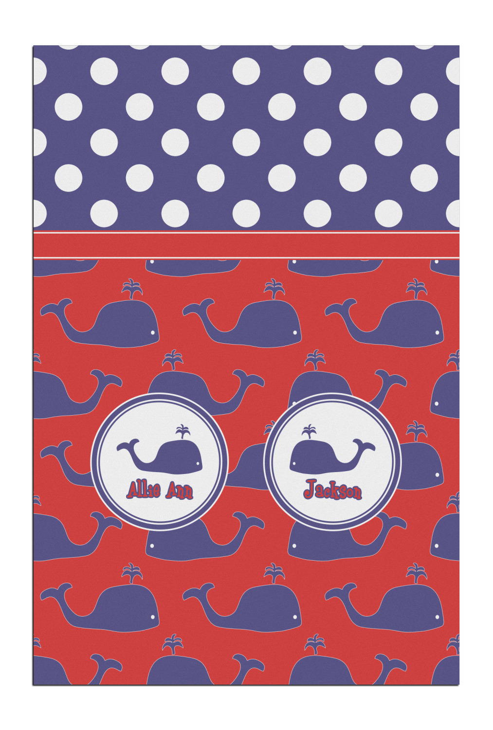 Calling all children who would rather be at the beach than at school! This nautical design, featuring polka dots and whales in All-American classic red, white, and blue, is perfect for you.