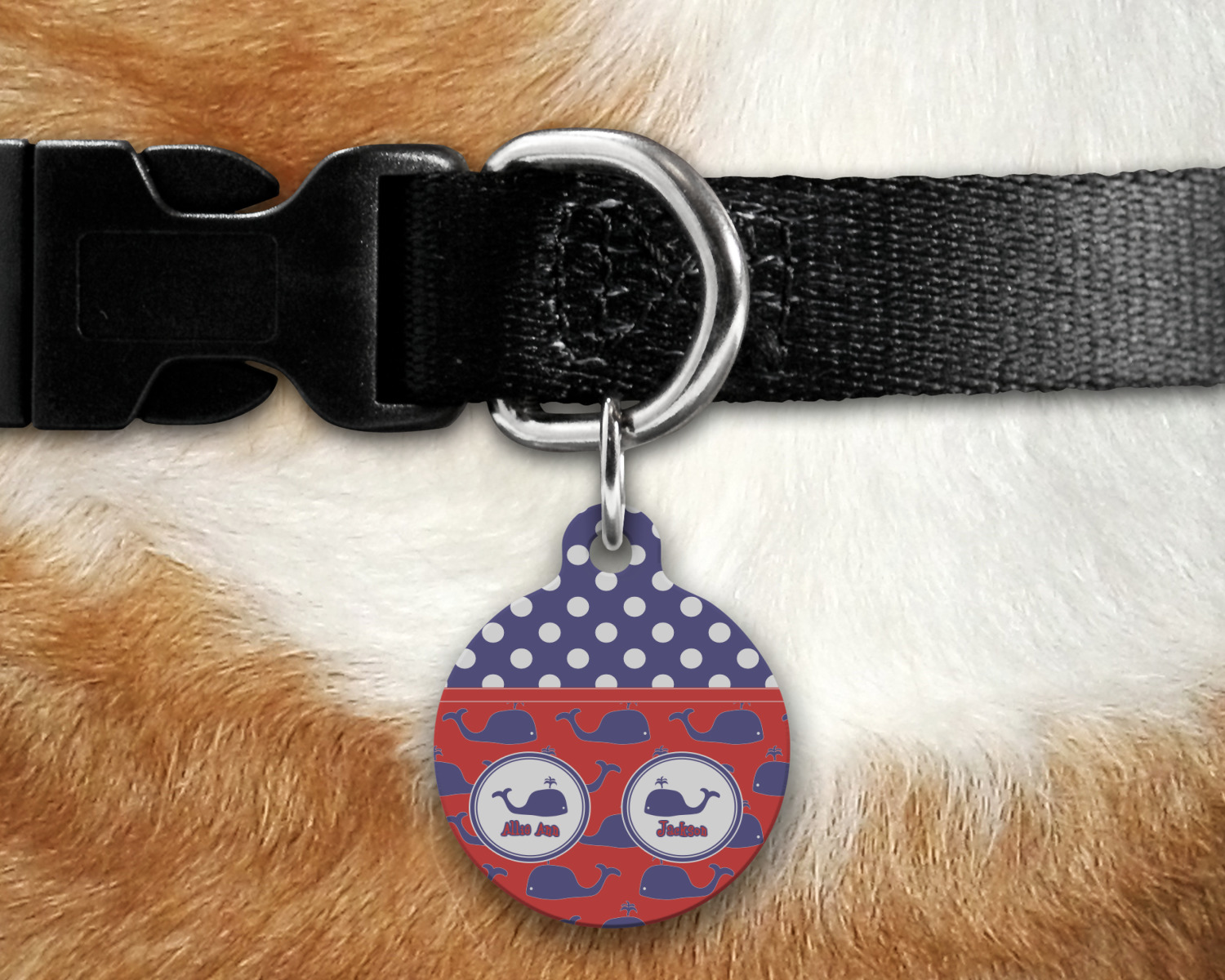 Go ahead; skip the monotony of plain pet ID tags with your very own, customized & personalized, round pet tag! This pet ID tag, fitting for both cats and dogs, will catch the eye of any onlooker (humans, canines, and felines, alike!) and accentuate your pet's individual personality.