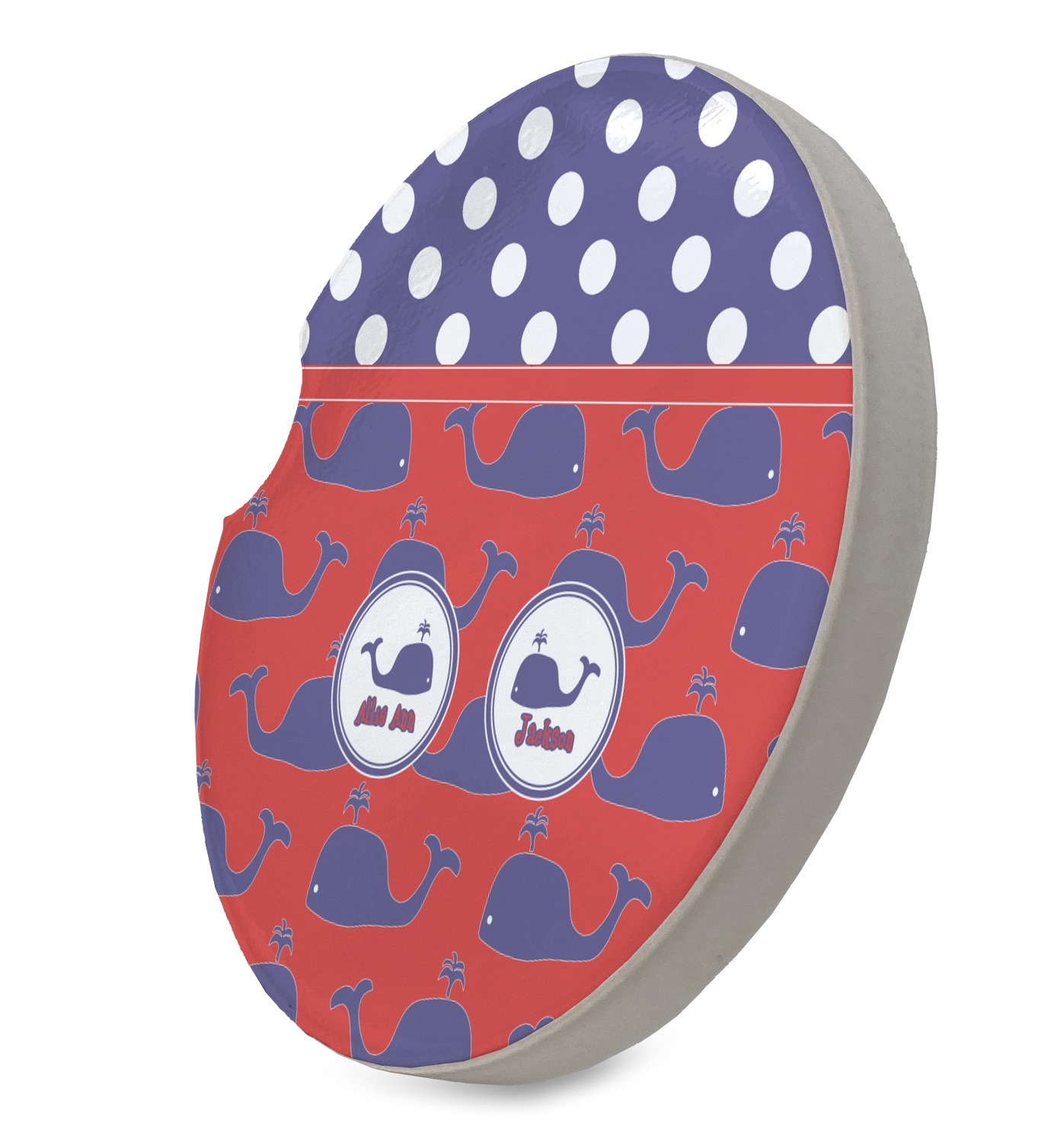 These sandstone coasters are round, robust, and feature a smoothed glossy side to exhibit your customized design. With a 2.5 inch diameter, these stone coasters will fit snugly inside most cup holders. This model also features a semi-circle shaped divot that allows for easy removal, despite the tight fit. You can purchase these car cup holder coasters in a pair, or singularly, depending on your needs.