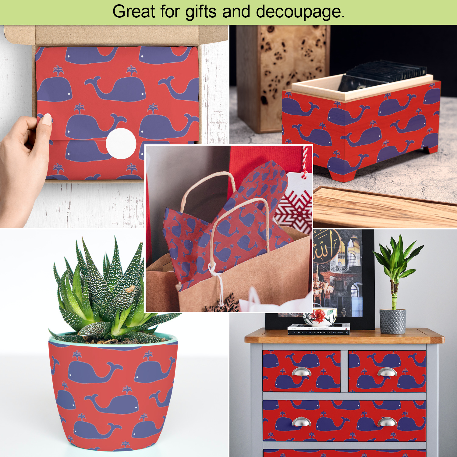Our tissue paper sheets are also perfect for decoupage i.e. the art of gluing paper on ordinary objects to decorate them.
