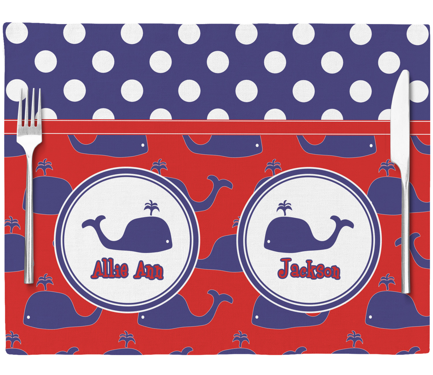 Calling all children who would rather be at the beach than at school! This nautical design, featuring polka dots and whales in All-American classic red, white, and blue, is perfect for you.