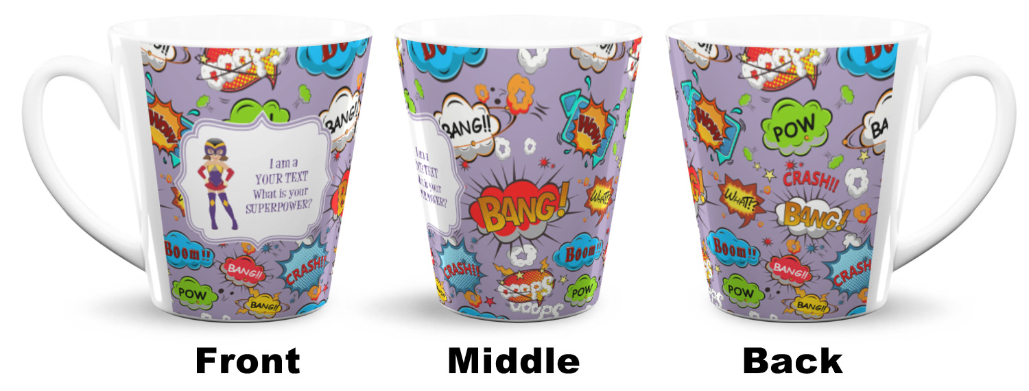 Choose from one of our two ceramic latte mug sizes. Our 12oz latte cups are great for a few shots of espresso or some tea before bed. The 16oz mug is a tall latte mug perfect to hold iced coffee or give you extra room to sip your favorite drink. We print your design with a glossy finish wrapping around the outside of the ceramic mug, so make sure your design is displayed to your ideal vision!