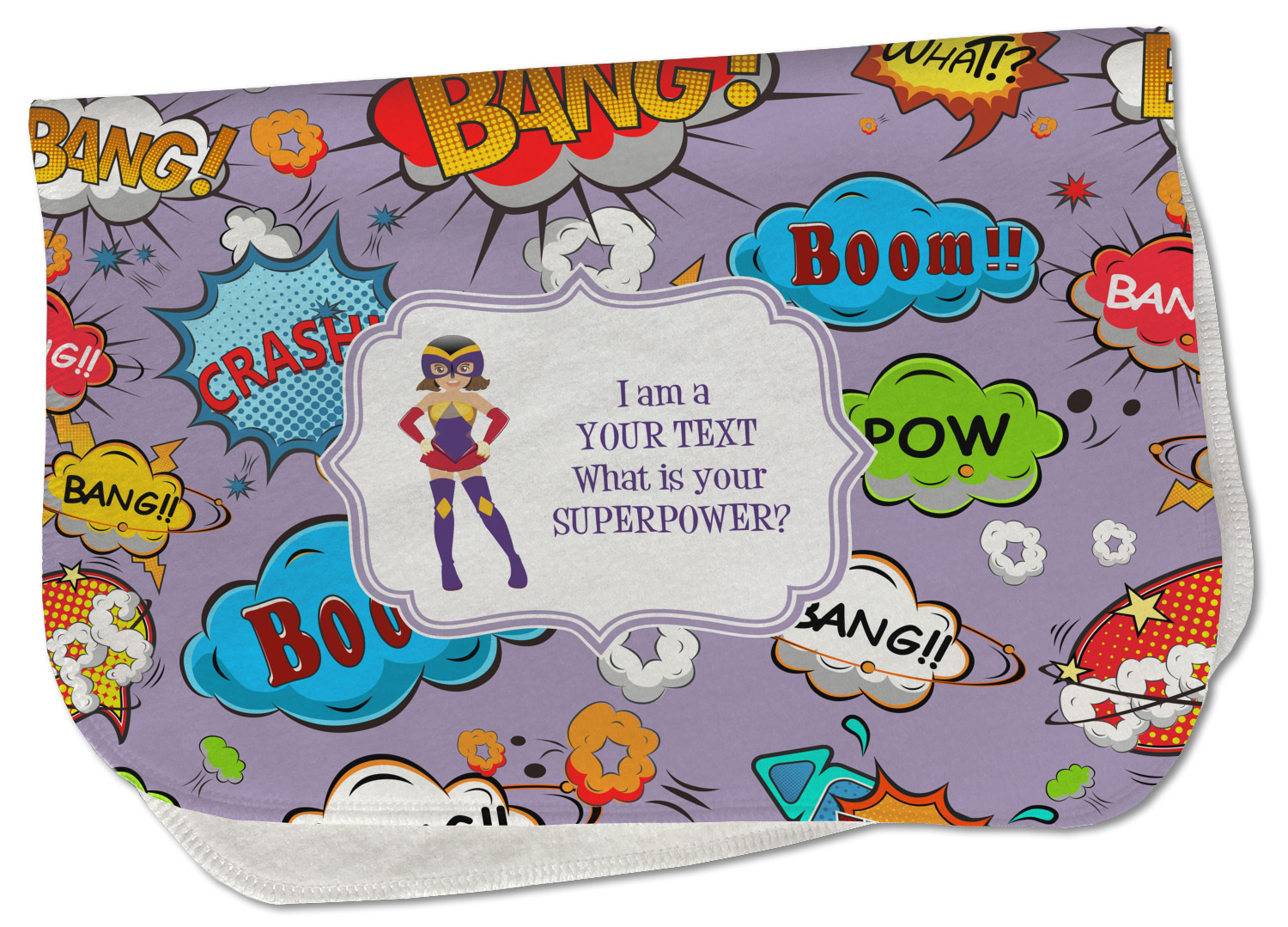 Choose your baby burp cloth from our two styles - Fleece (rectangular) or Microfiber Velour (peanut shape). The lightweight and absorbent design makes each burp cloth multipurpose; use them as a burp pad, a lap pad, a changing table, or a spare cloth to clean up any baby mess. Your customization is displayed across the front with baby-safe ink to ensure extra comfort with a white backing.