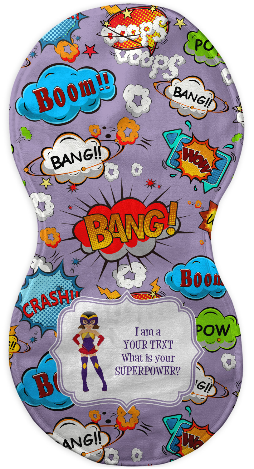 Choose your baby burp cloth from our two styles - Fleece (rectangular) or Microfiber Velour (peanut shape). The lightweight and absorbent design makes each burp cloth multipurpose; use them as a burp pad, a lap pad, a changing table, or a spare cloth to clean up any baby mess. Your customization is displayed across the front with baby-safe ink to ensure extra comfort with a white backing.