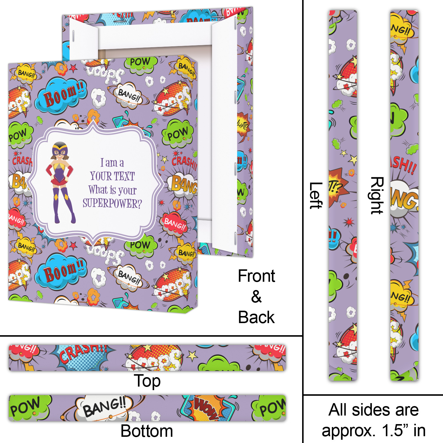 What is your SUPERPOWER? We are developing SUPERPOWER series of designs and this is the first one of the series. In this one you, we have graphics of superheroes (we have many in our systems - men, women, boys & girls) and your choice of text besides the graphic. We LOVE the saying I am a - "your text here" - e.g. supermom, superdad, superkid, surgeon, doctor, nurse etc, followed by what is our SUPERPOWER?