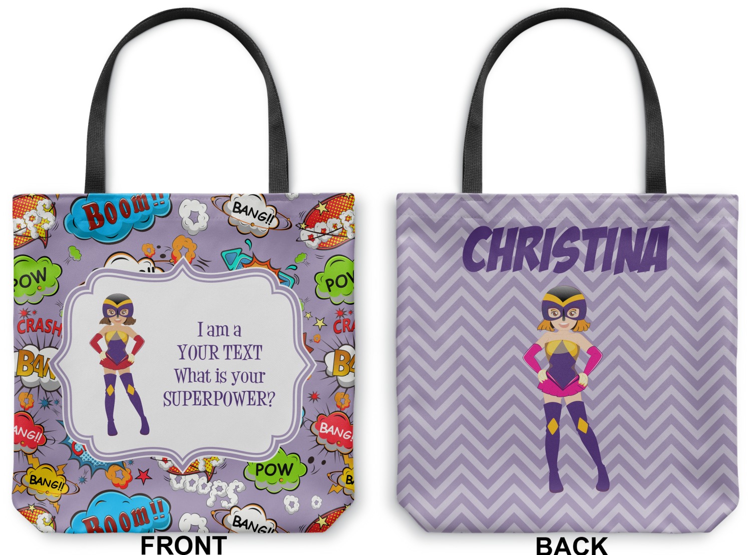 Our totes are made right here in the USA. Your design is printed on canvas fabric; the fabric is then cut and sewn on the sides and on the bottom to add an approximately 3.5 inch gusset. Black cotton handles are sewn in and reinforced. Your tote has a designs on both sides - the designs can be the same or different - the choice is yours. The inside of the tote has a black fused lining.