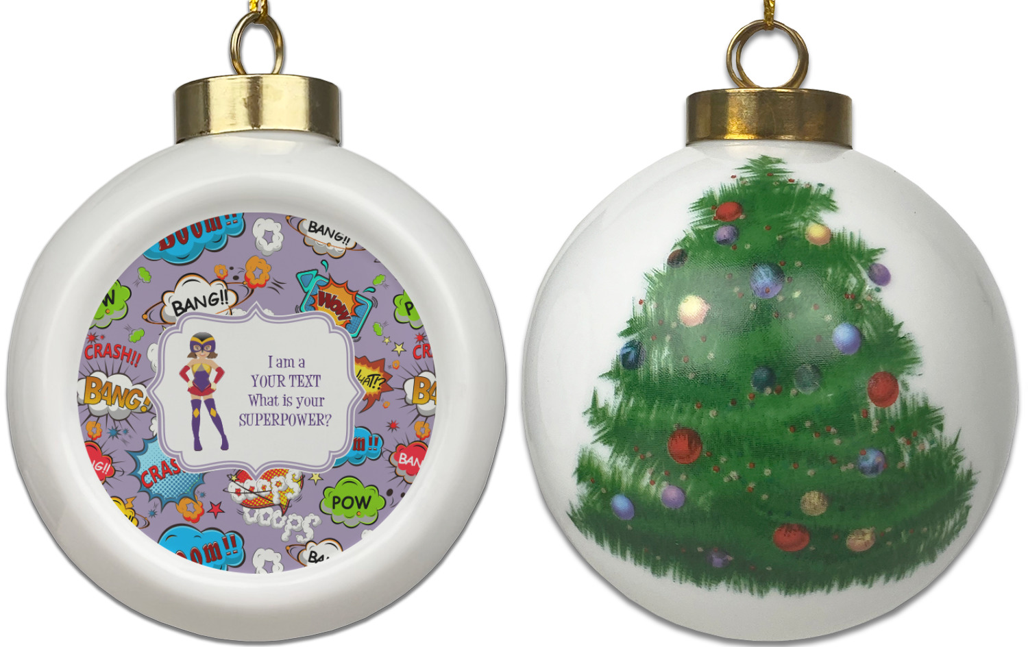 Our Christmas ornaments are a unique ceramic ball shape with a twist as it has a flat face to display your custom design! Select from one of our two design types - Christmas Tree or Poinsettia Garland - to adorn the curved back of your personal design. Each ornament measures 3H x 2.5W x 2D accompanied with a gold string accent for finishing touches to hang on your beautiful Christmas tree!