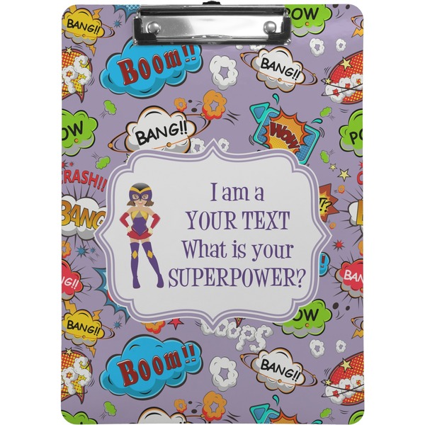These custom clipboards are made from a strong hardboard and are coated with a glossy finish that accentuates the colors of your design. Alongside a retractable hook at its top, these decorative clipboards also feature sturdy clips to secure several sheets of paper. We sell these clipboards in two separate sizes. Our letter size measures at 12.5" L x 9" W, while our legal clipboard is approximately 15.5" L x 9" W. On both models, your personalization is printed on both sides of this clipboard and can be customized individually.