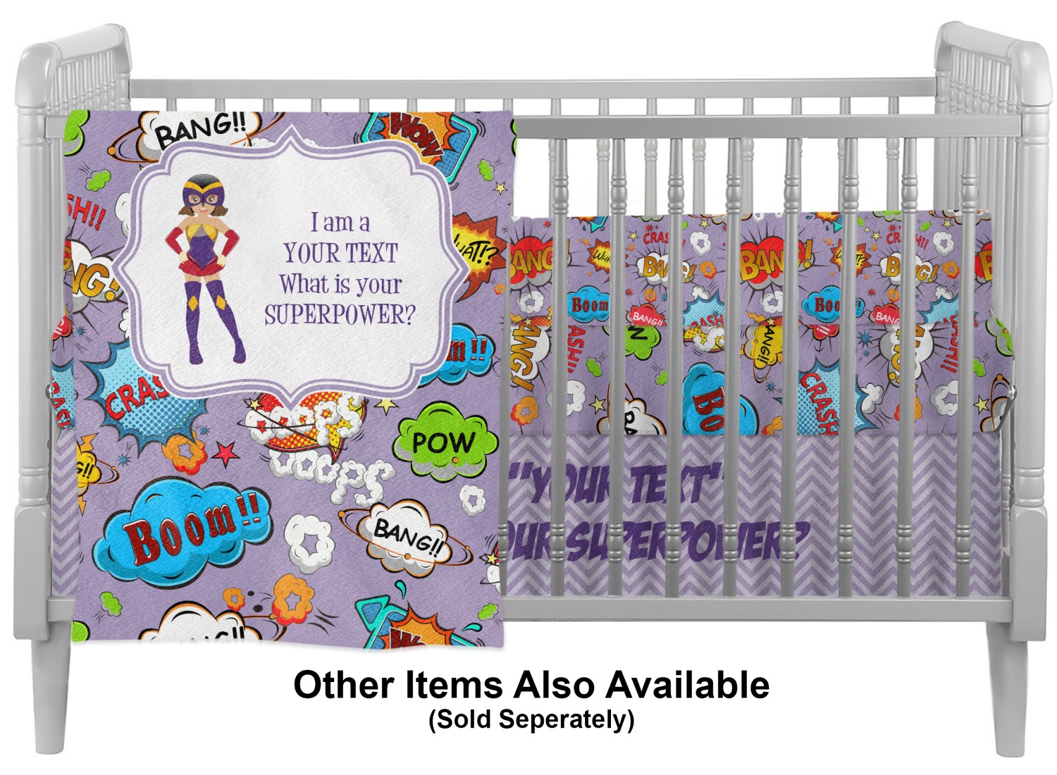 Interested in adding more personalized items to your baby's crib bedding set? Explore our Baby and Toddler department, where you'll find an array of customizable products for your child! We offer crib fitted sheets, nightlights, and curtains for your baby's nursery. Looking to match your own comforter set with your child's? We even offer duvet covers and comforters for adults, in a variety of sizes!