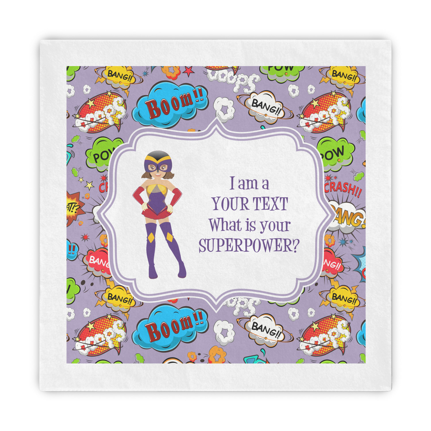 What is your SUPERPOWER? We are developing SUPERPOWER series of designs and this is the first one of the series. In this one you, we have graphics of superheroes (we have many in our systems - men, women, boys & girls) and your choice of text besides the graphic. We LOVE the saying I am a - "your text here" - e.g. supermom, superdad, superkid, surgeon, doctor, nurse etc, followed by what is our SUPERPOWER?
