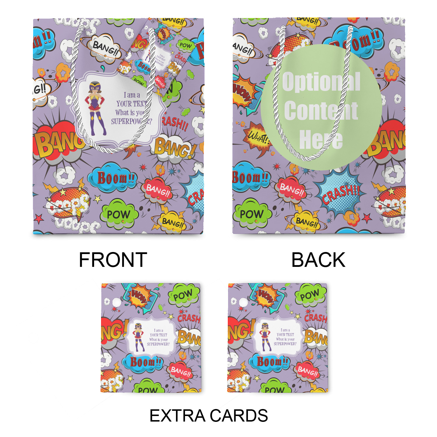 Use our design studio to design your gift bag to perfectly suit the recipient. With customization areas on both sides of the bag the possibilities are endless!