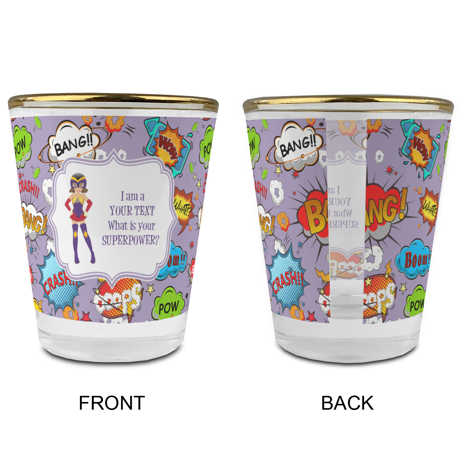 Made with frosted glass, these shot glasses are printed in full color with the design of your choice. They are a standard 1.5oz shot glass and are 2.4" tall. The print is wrapped around the shot glass in a full wrap and boldly displays your customization.