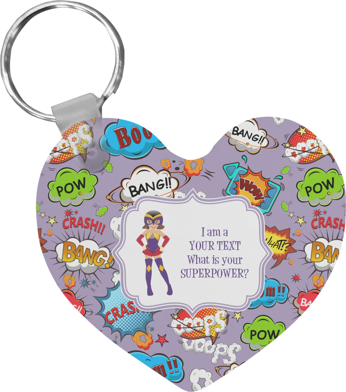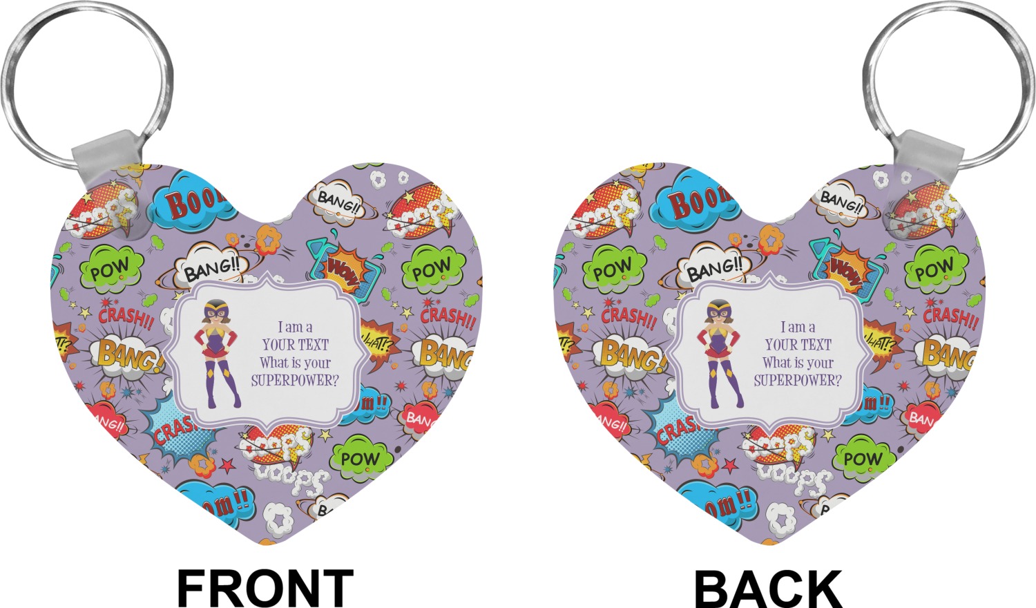 Our personalized keychains attach to the included metal, split key ring with a plastic, removable snap. Since a metal ring is included with your purchase, you have the liberty to keep your keys together on the ring, with or without your unique keychain. We offer this keychain in three different shapes: circle, heart, or diamond. We print your personalized design(s) on both sides of the key chain, and the surface has a glossy, reflective finish that only emphasizes your design. Each keychain is approximately 2.25 by 2.25 inches.