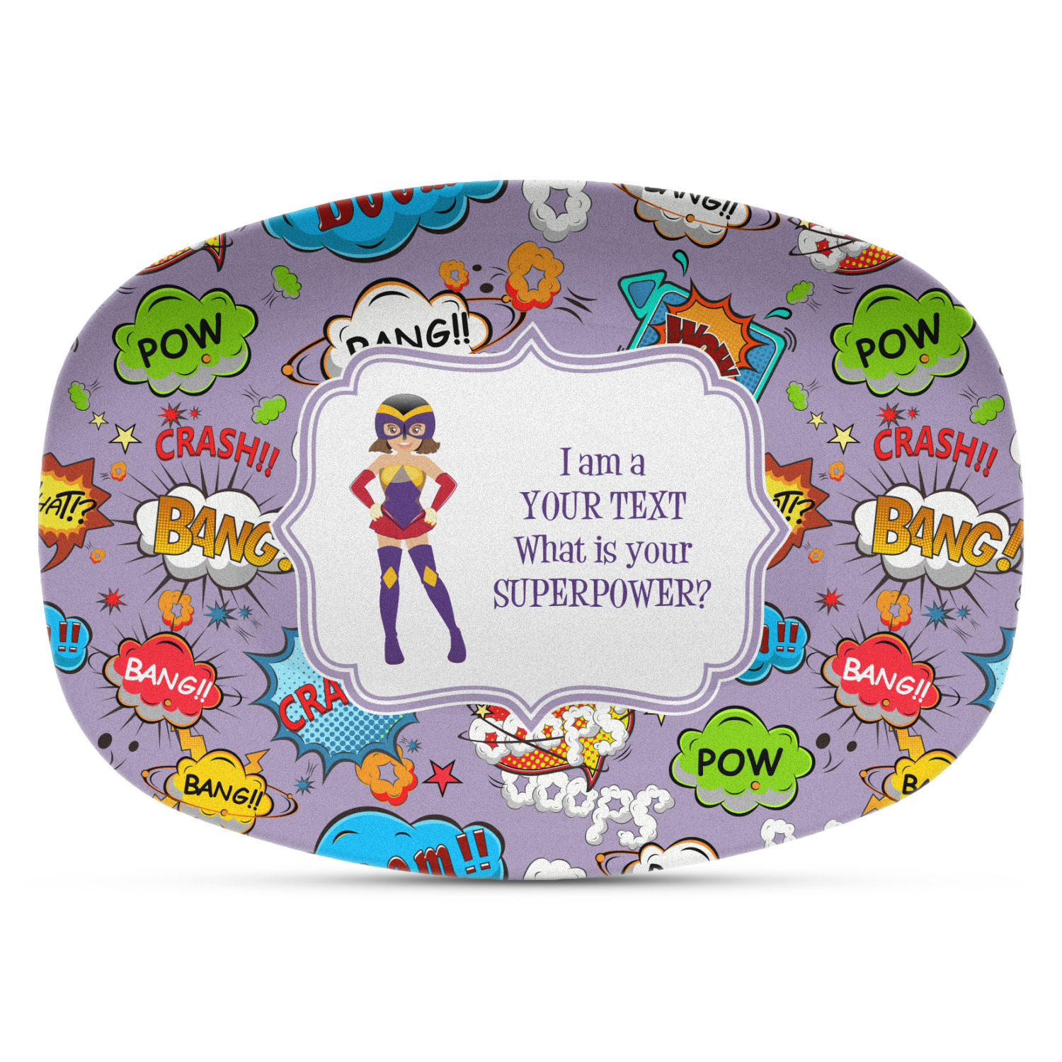 These serving platters are made from a composite, thermo-set, polymer plastic that gives it the versatility, durability, and weight of a melamine platter, without any of the downsides of melamine. These personalized platters, can withstand temperatures up to 250 degrees Fahrenheit, for up to 60 minutes. No harmful chemicals, such as BPA, formaldehyde, and DEHPs were used in the manufacturing of this product. This large serving platter measures at 14" x 10.25", and is spacious enough to hold any of your appetizers or bite-sized desserts. The platter exhibits your personalization across the entirety of its front.