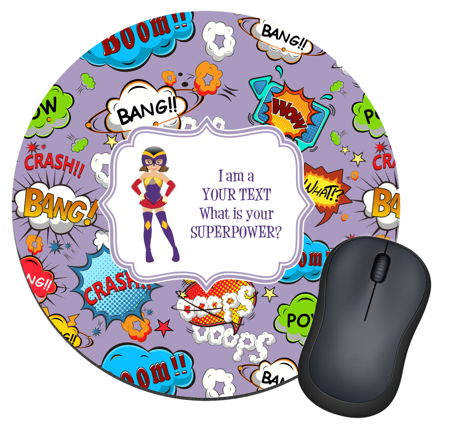 What is your SUPERPOWER? We are developing SUPERPOWER series of designs and this is the first one of the series. In this one you, we have graphics of superheroes (we have many in our systems - men, women, boys & girls) and your choice of text besides the graphic. We LOVE the saying I am a - "your text here" - e.g. supermom, superdad, superkid, surgeon, doctor, nurse etc, followed by what is our SUPERPOWER?