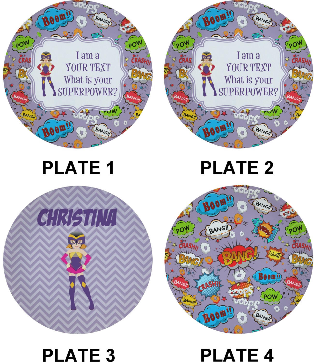 With a of designs and patterns, these plates are completely customizable. Choose a foodie design, complete with red-hot chili peppers, or go classic with stripes or plaid. Include your monogram or family name to make sure these plates never get lost at parties!
