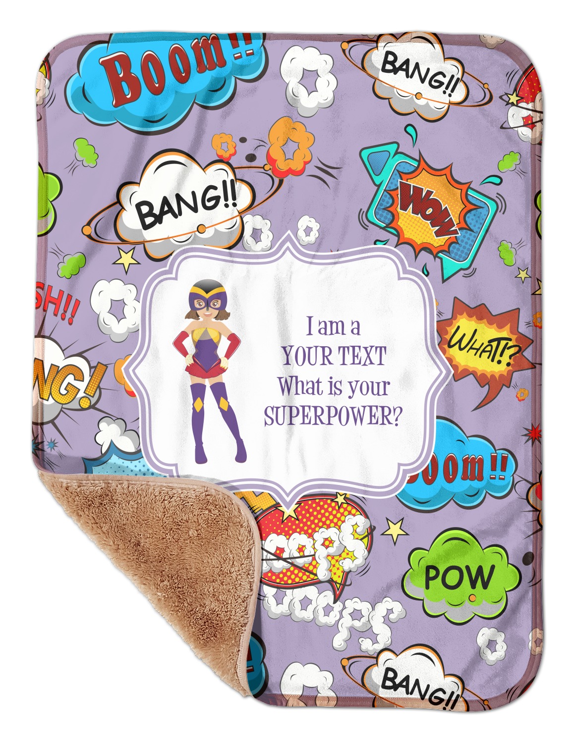 These toddler blankets are made of two different materials; the front side is made of a velvety, minky-like material that displays your customization and is perfect for a baby's delicate skin. The underside is crafted from a fluffy, sherpa fleece, and bears a classy, tan color. The dual texture gives your baby added comfort, as both sides are incredibly soft and plush. The corners of this blanket are rounded, and the ribbing of the blanket is a tan color, which complements the sandy color of the sherpa fleece. At approximately 30 by 40 inches, this custom baby blanket is the perfect size for babies and toddlers.