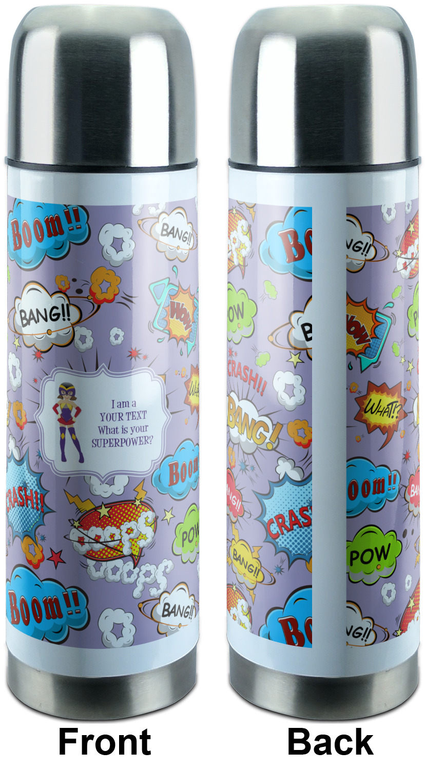 Transport your iced and heated drinks in style with our stainless steel thermos! This effective, custom thermos insulates your beverages for hours, while displaying a creative, personalized design completely of your choice!