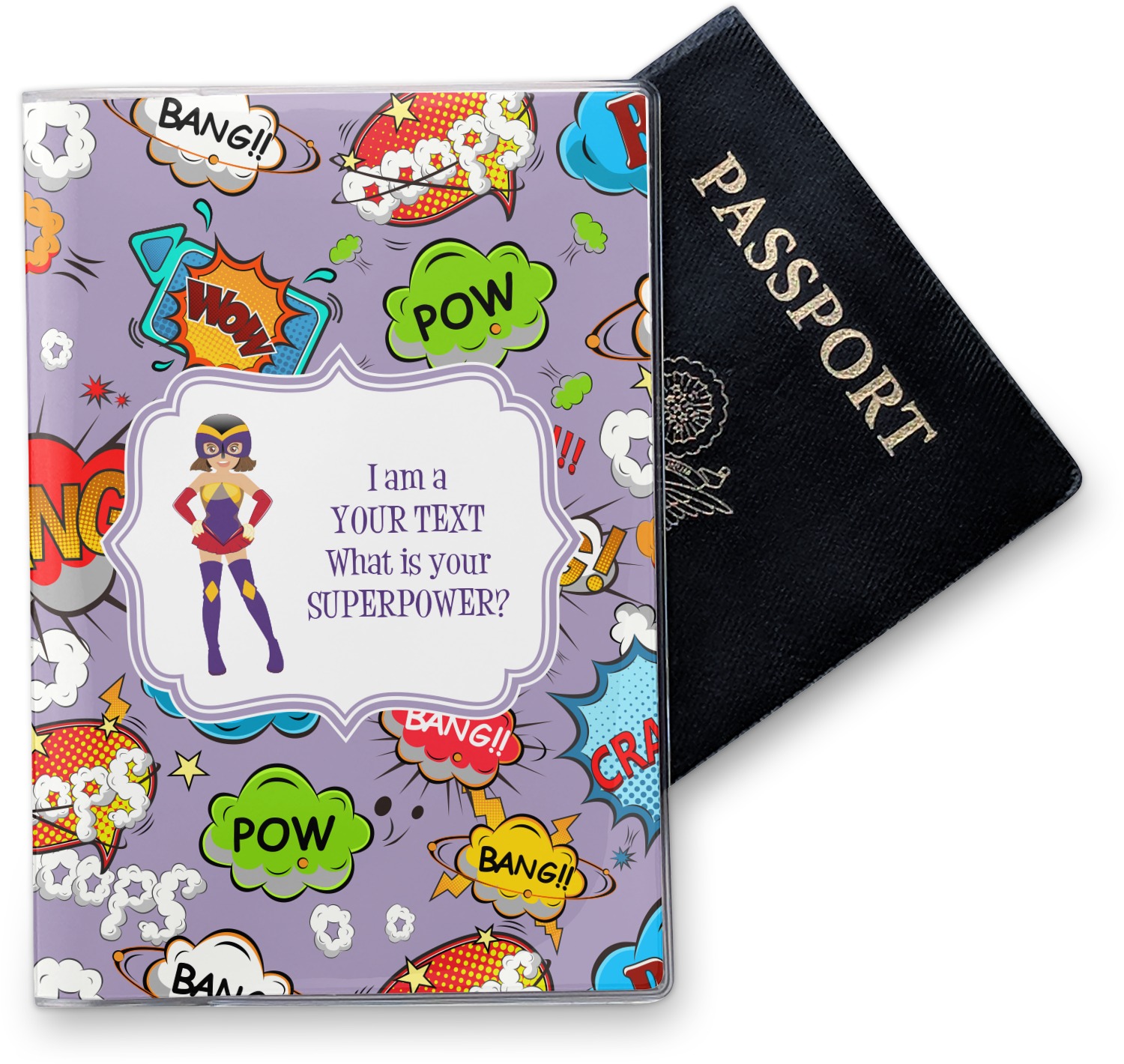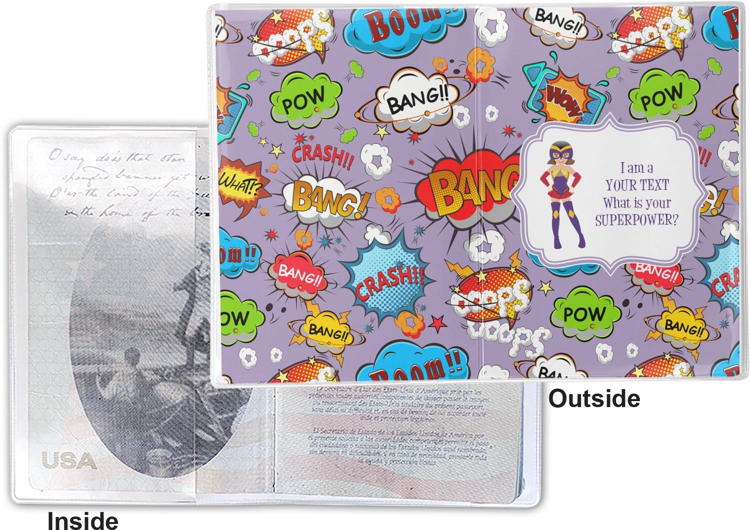 This cover is made of a sturdy clear vinyl with a personalized vinyl insert inside. There is a large and a small pocket on either side to hold the covers of your passport easily and firmly. The passport holder is approximately 7.5" x 5.25", the perfect size to snugly fit your passport. This slim cover is the perfect way to protect your passport without being one more bulky item you have to carry.