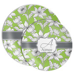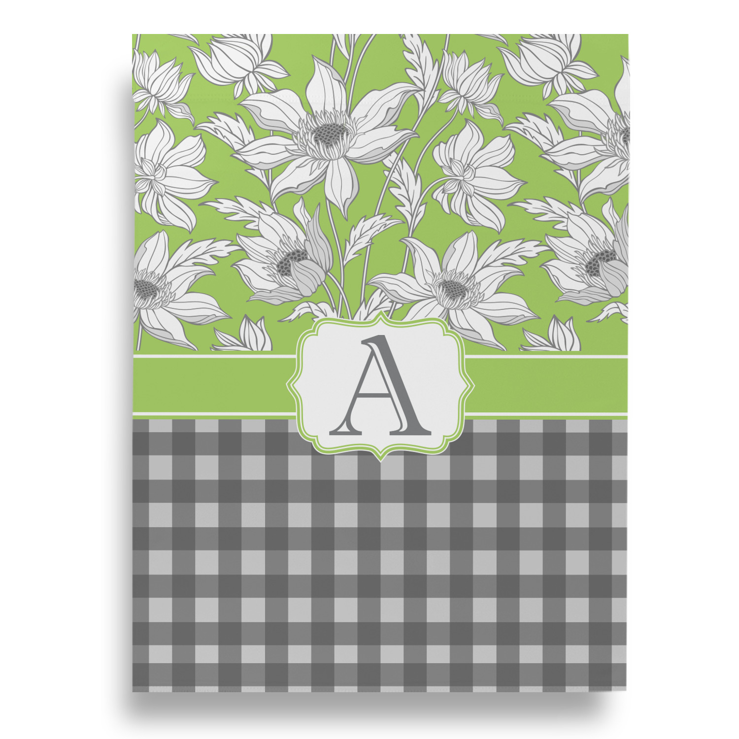 Sketches of long stem white daisies outlined in gray spring to life up against a green background. A white trimmed gray ribbon coordinates with a decorative label to showcase the personalization of your choice.